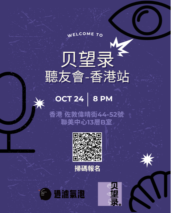 2)贝望录香港站的线下听友见面会,大家可以通过shownotes中的活动链接报名参加。