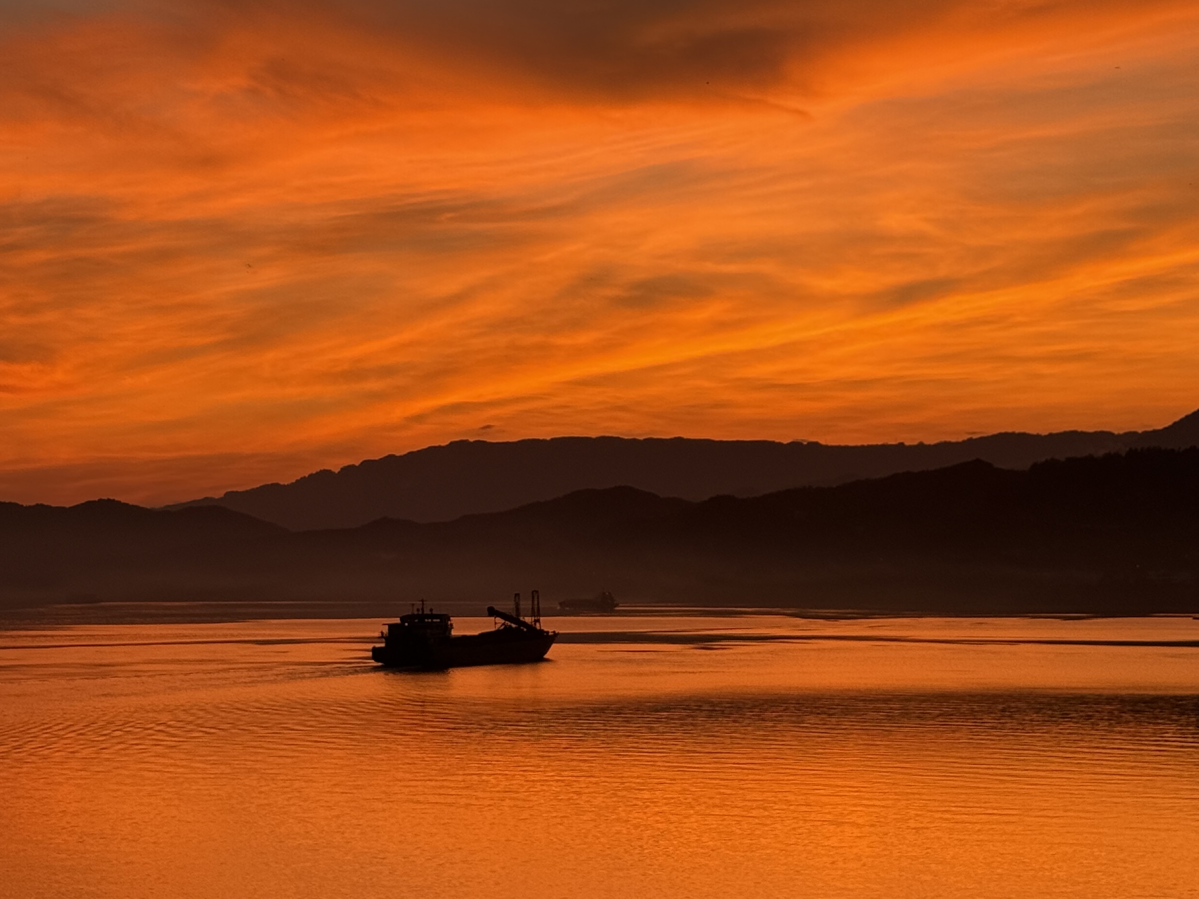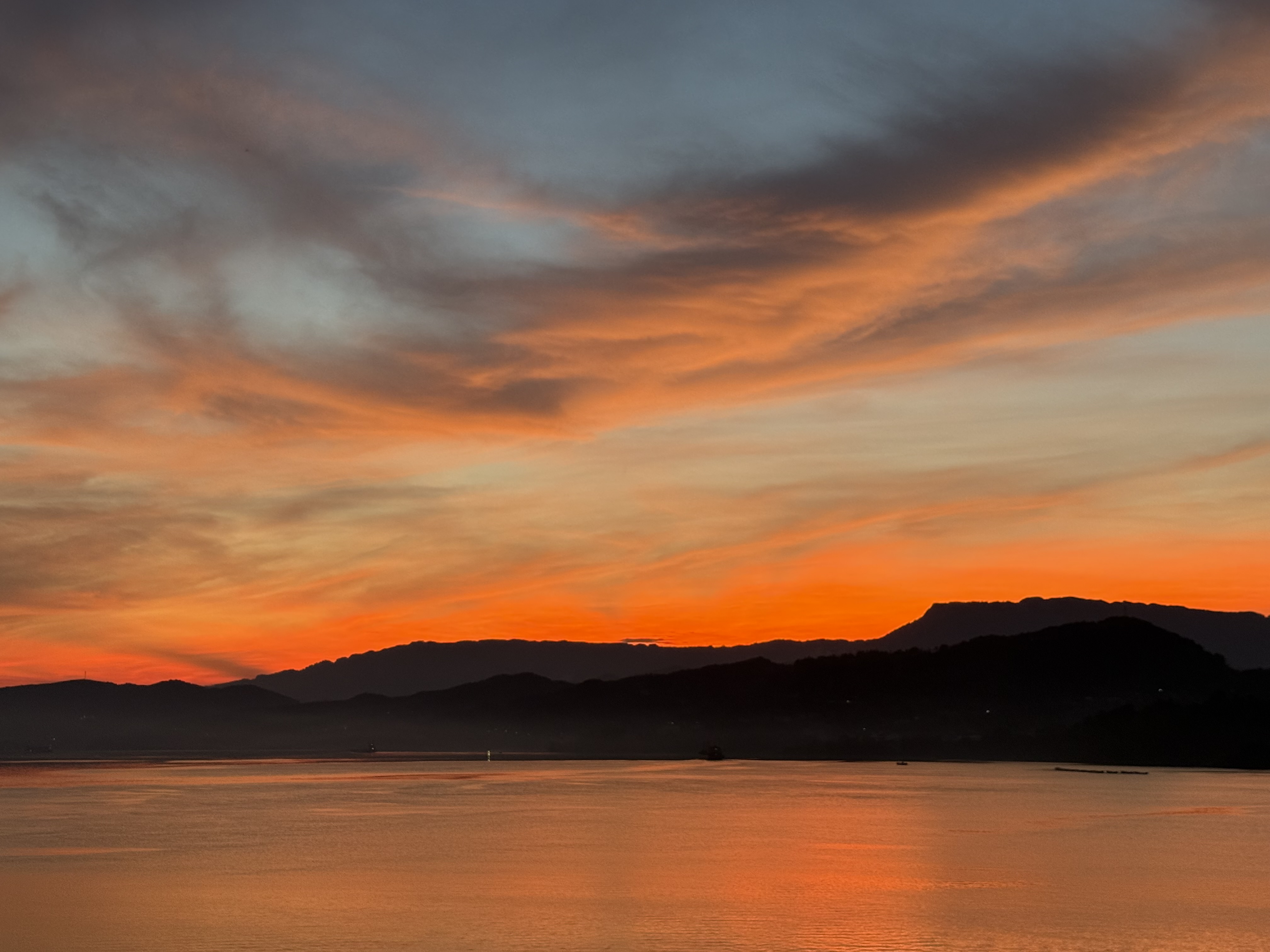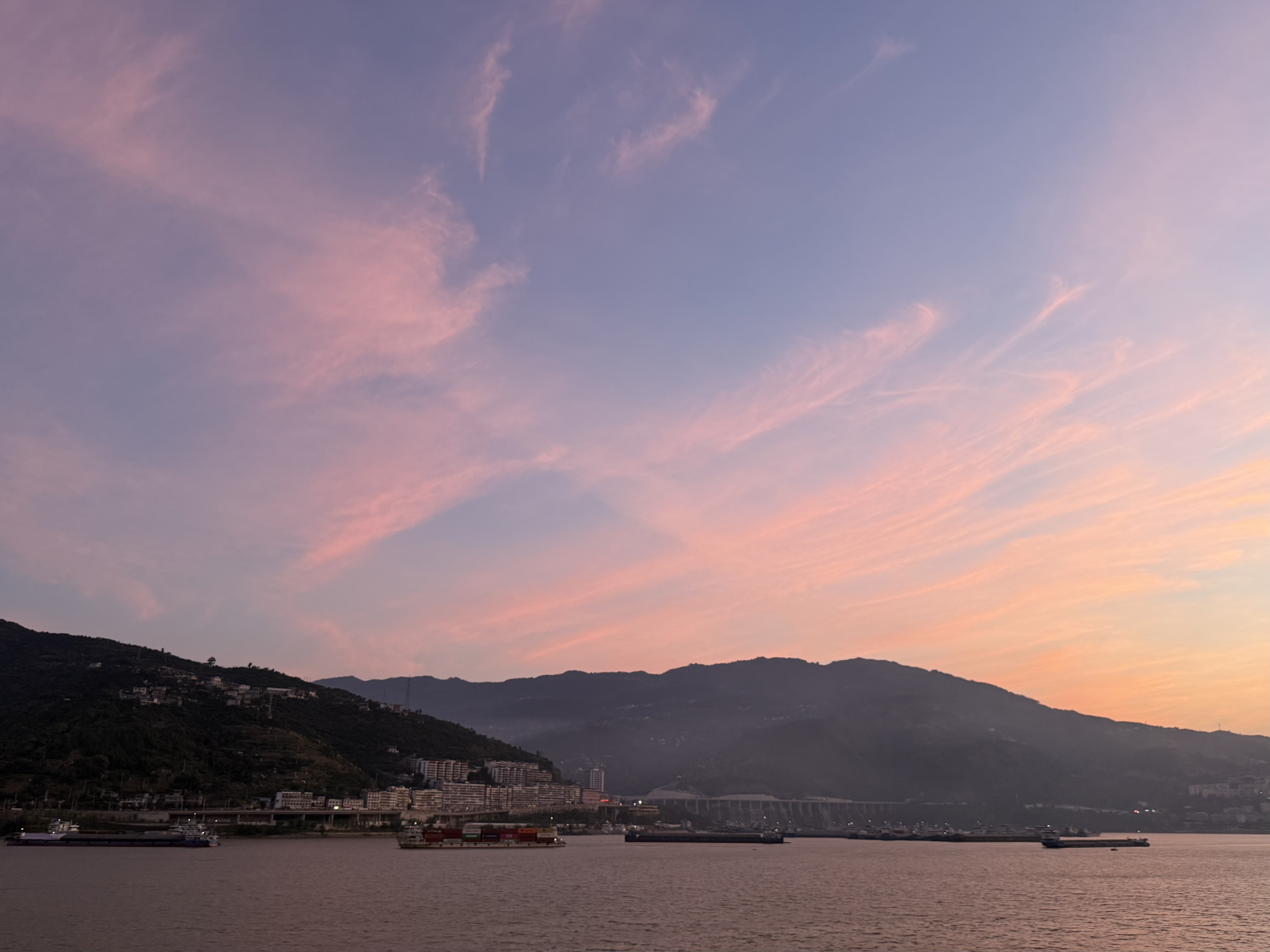 上图:2025年十一期间三峡游轮旅程中在石宝寨遇到的江山晚霞