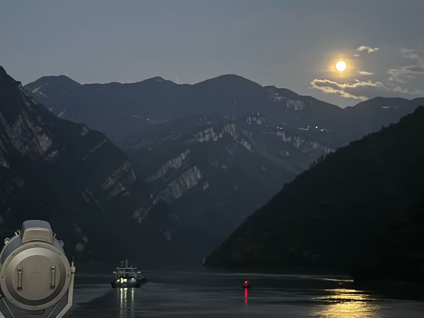 上图:2025年十一期间三峡游轮旅程中在巫峡和巫山看到的江上中秋月