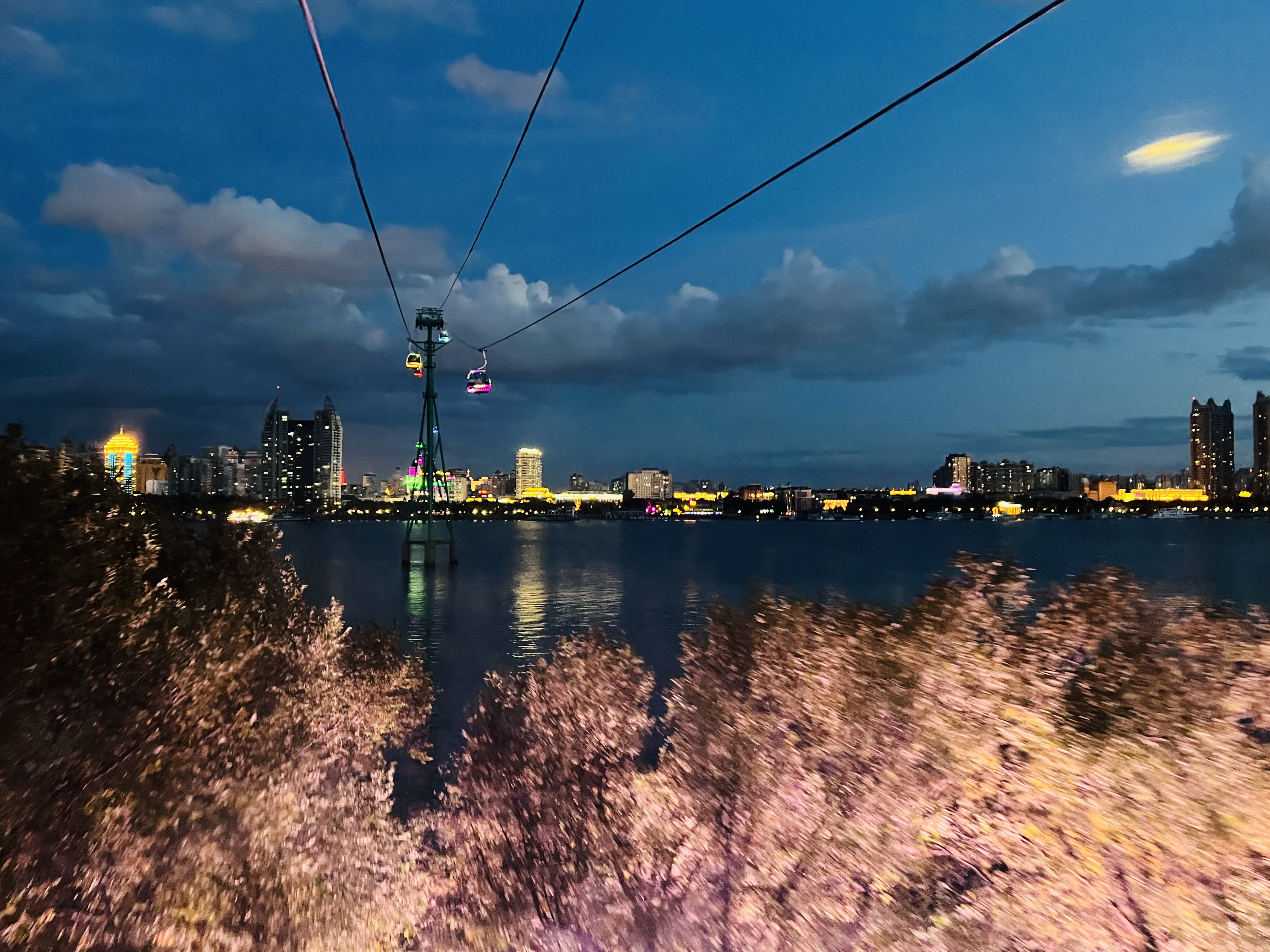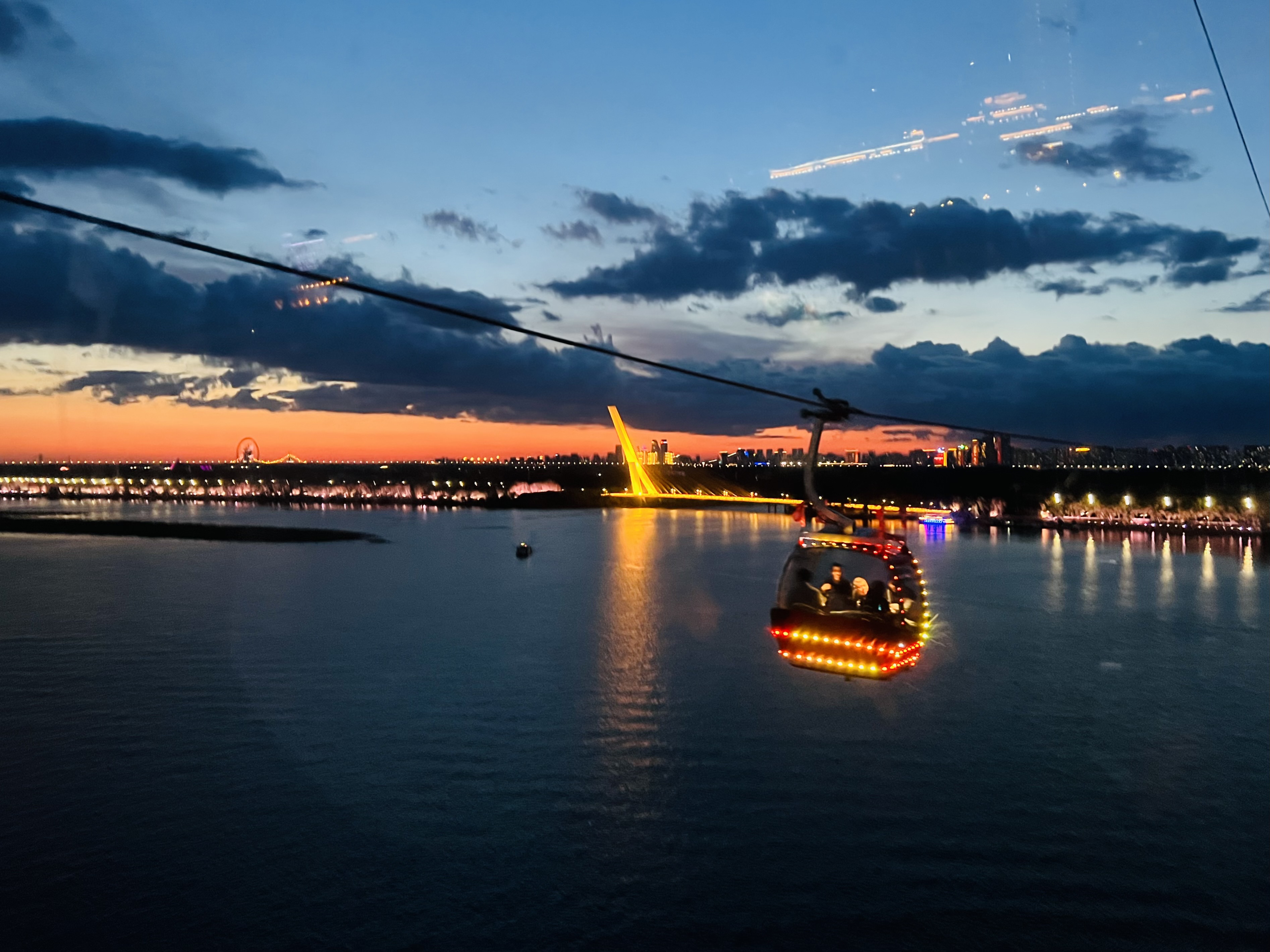 上图:2023年十一期间的哈尔滨松花江的过江索道,白天夜里都好看,就是排队比较长。