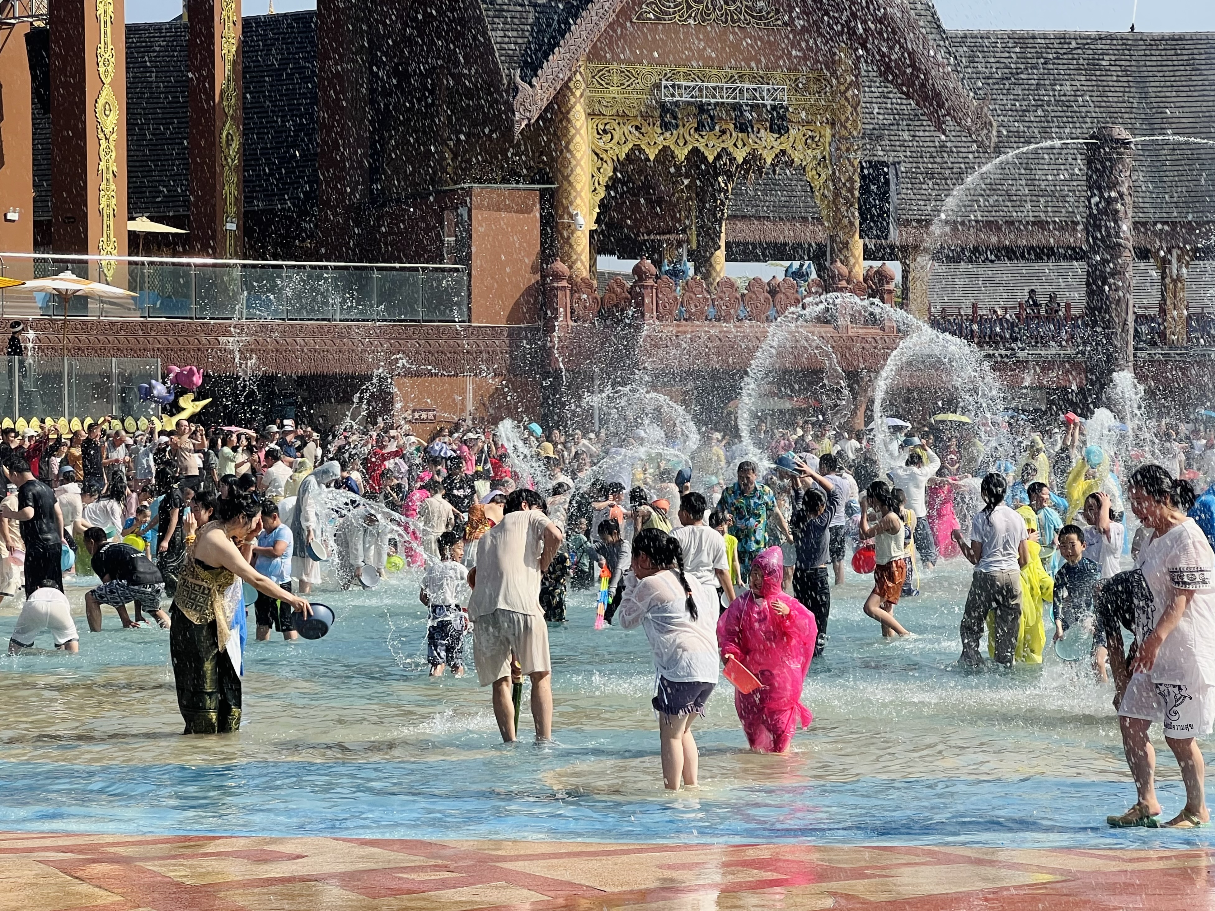 上图:2025年春节期间西双版纳傣族园每天都有的泼水活动,很热闹。