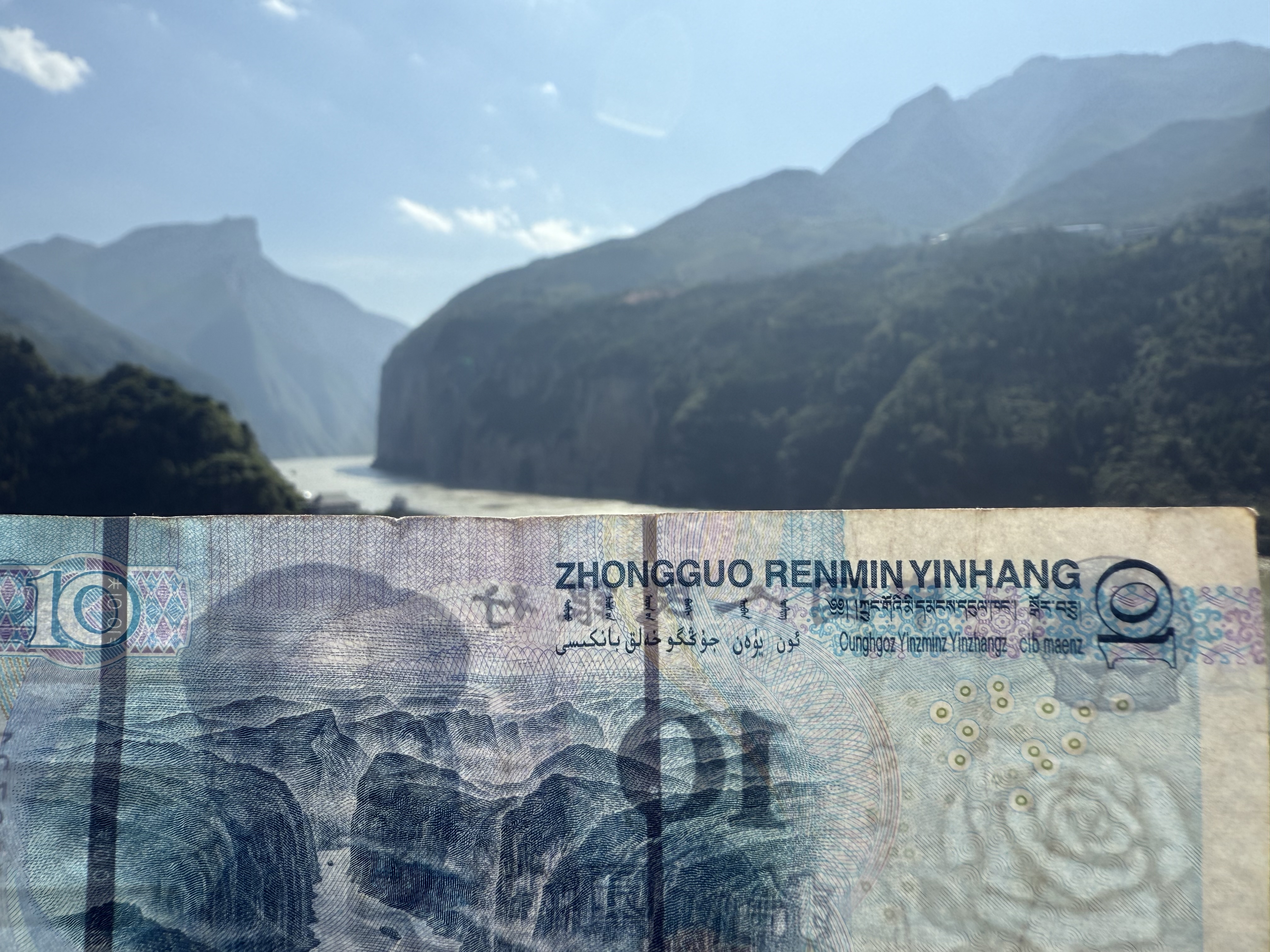 上图:2025年十一期间三峡游轮旅程中在白帝城拍10元人民币背面的夔门