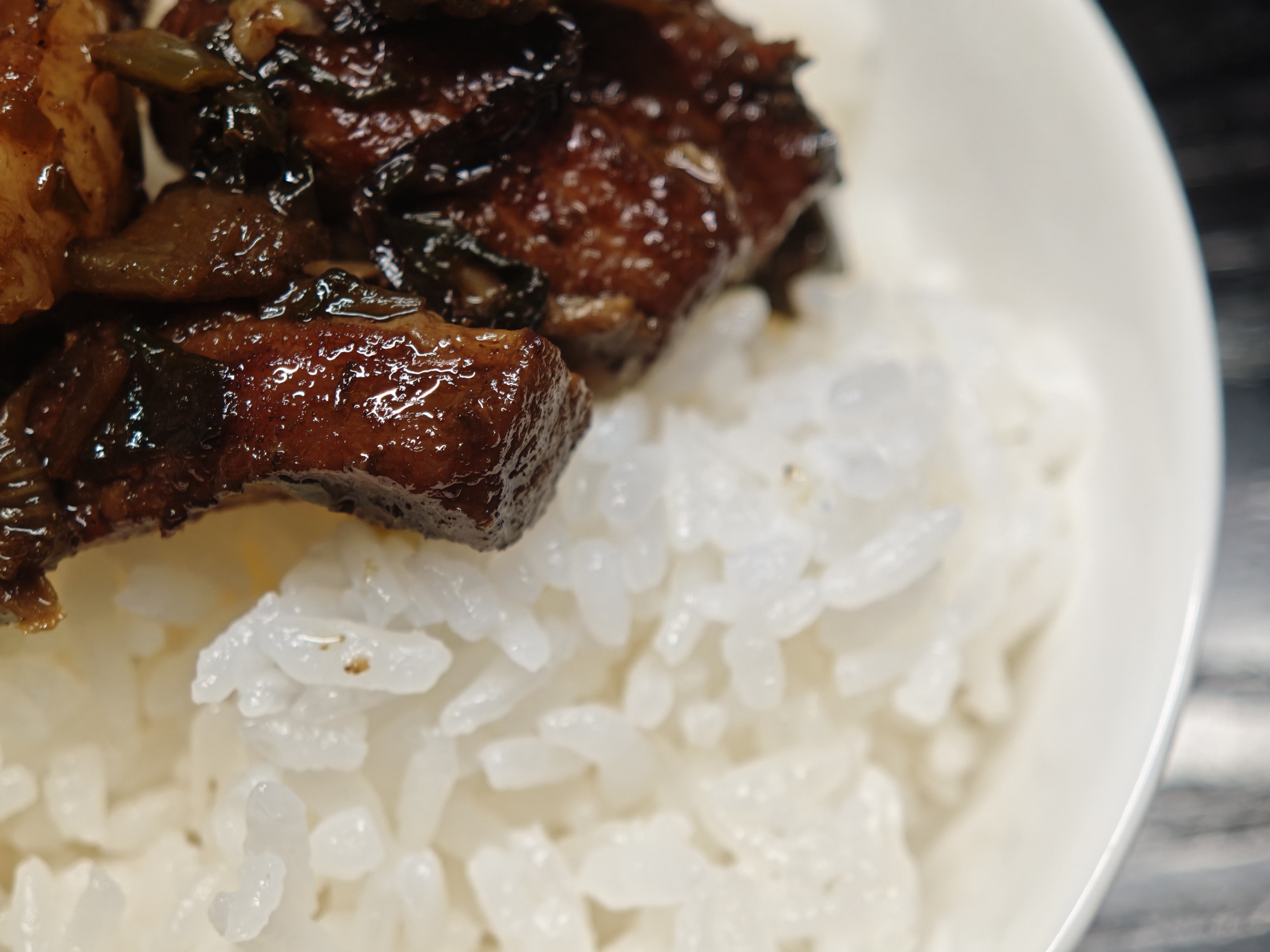 材料:五花肉700g、雪里蕻咸菜160g、葱段、姜片、八角2个、香叶2片、桂皮1小段、柱侯酱1勺、豆瓣酱1勺
