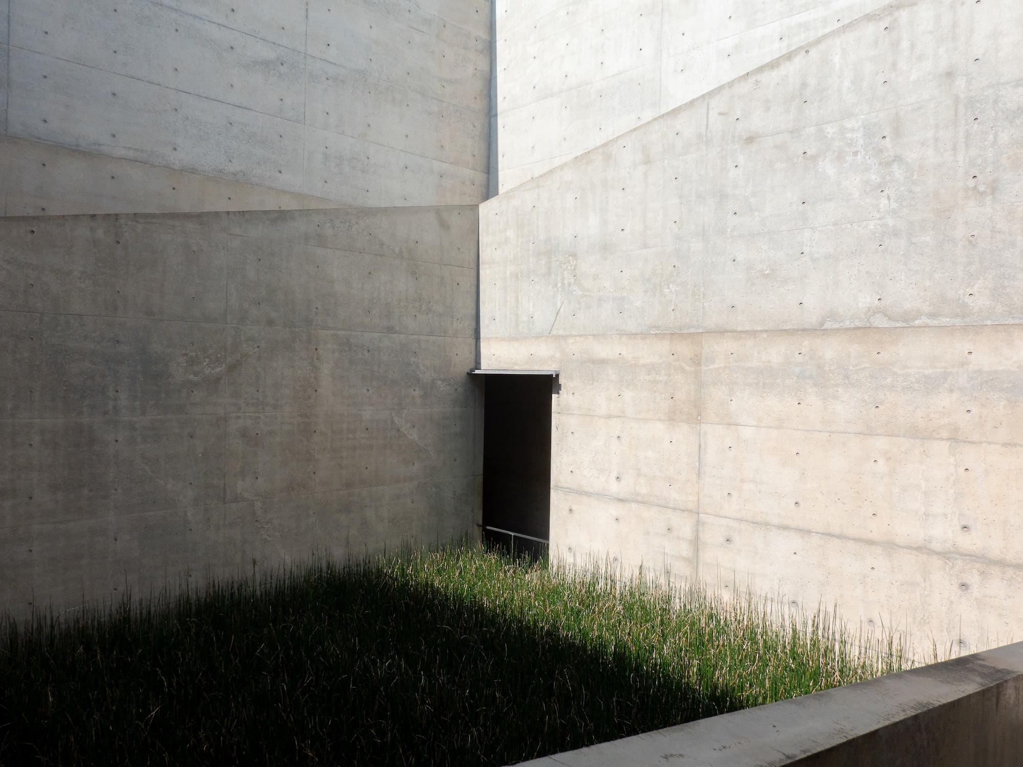 地中美术馆(Chichu Art Museum)的名字“地中”,字面意义就是“埋在地底”。从外面几乎看不到建筑,只有一条混凝土坡道通向地下。安藤老师的想法是“让建筑隐藏在自然中”,因此整座美术馆完全依靠自然光照明,没有人工灯光,也不设指示标牌。