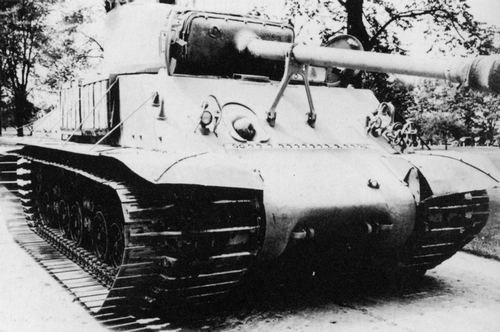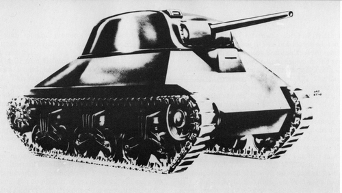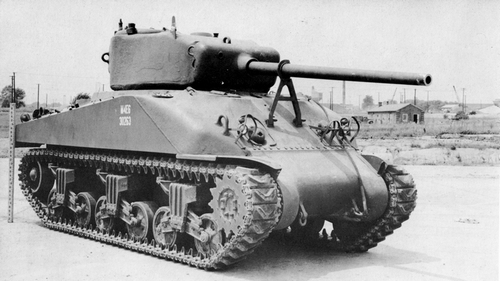 一辆使用水平涡卷弹簧悬挂装置和T80型宽幅履带的76毫米炮型M4A3坦克,它安装了990毫米宽度履带
