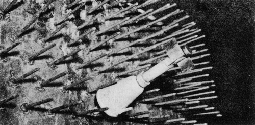 利用钢刺对抗破甲弹的试验,成功刺穿了战斗部