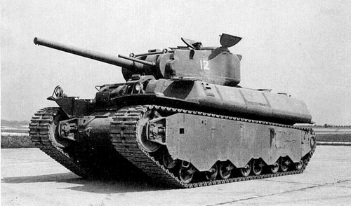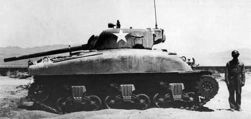 安装了早期型水平涡卷弹簧悬挂装置的M4A4坦克,使用标准的420毫米宽度T48型履带。该车当时正在诺克斯堡接受测试