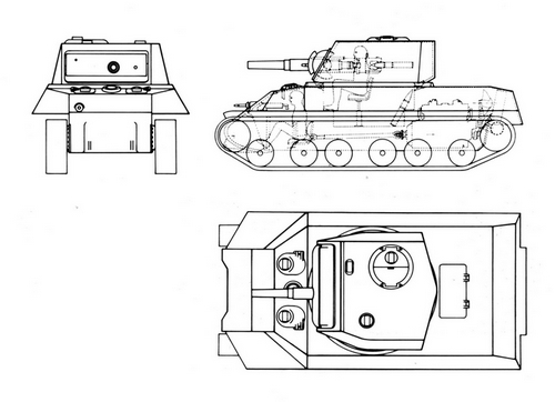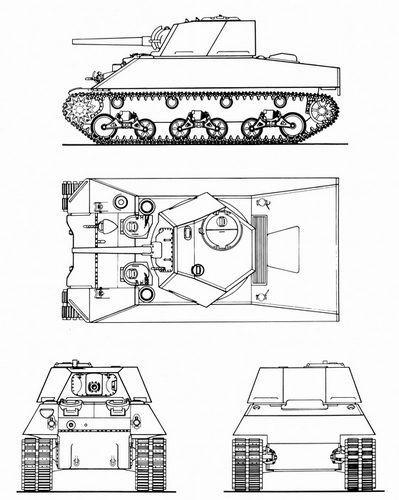 底特律提交的改进型设计图之一。安装105毫米榴弹炮,炮塔为焊接式