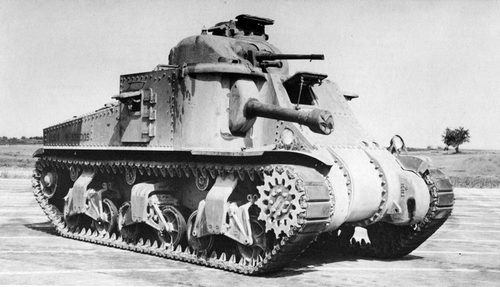 试验安装早期水平涡卷弹簧悬挂装置的M3中型坦克,序列号为935。注意车体每侧第1及第1轮轴架上装有减震器。照片摄于1942年初