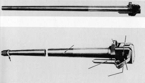 M1A1型76毫米火炮(上)及M1A2型76毫米火炮(下),后者在炮口处开有用于安装炮口制退器的螺纹