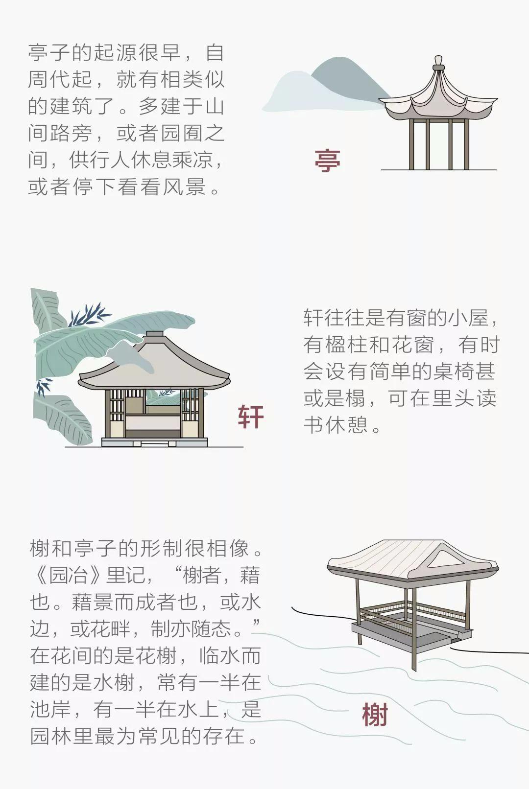 中国古代造园专著《圆冶》中将亭定义为:“亭者,停也,人所停集也。”《营造法原》中将亭定义为:“亭为停息凭眺之所”。亭只有屋顶,用于遮阴及避雨,而不建围护墙体,小巧玲珑,造型生动,通透空敞,视野宽阔,置身其间,自然心旷神怡。