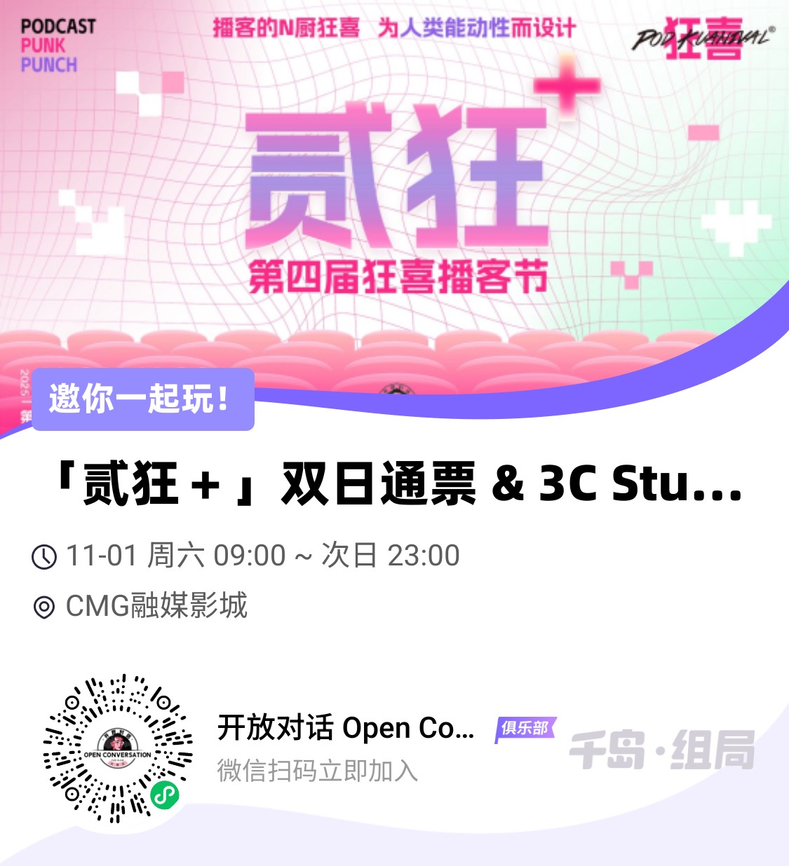 关老师还很大方,让我薅来六张狂喜的播客单日票,我们会在评论区选出六位同学赠票(截止本周五)
