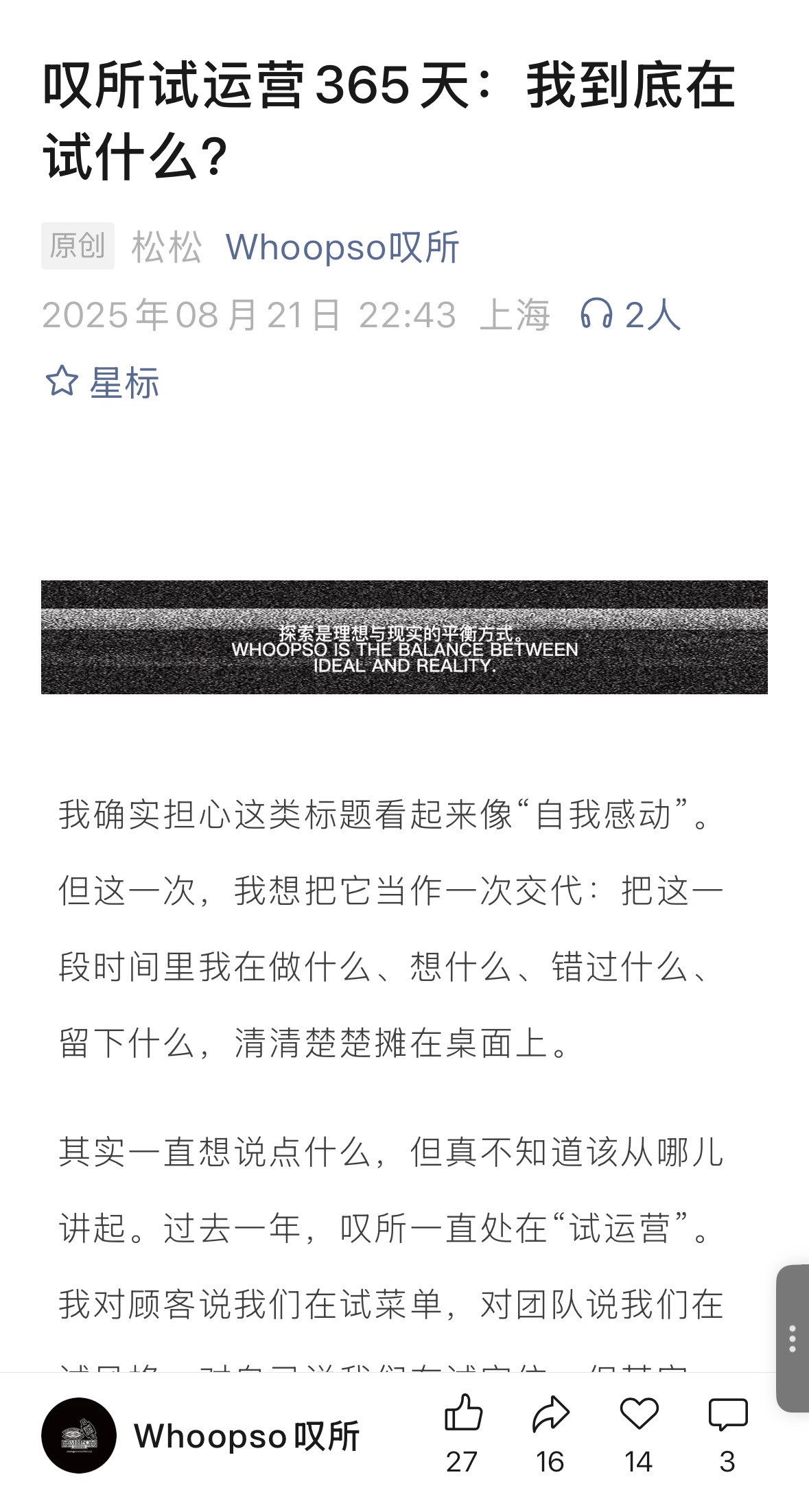 咖啡馆叫“叹所”WHOOPSO, 咖啡馆的Tagline:“探索是理想与现实的平衡方式”