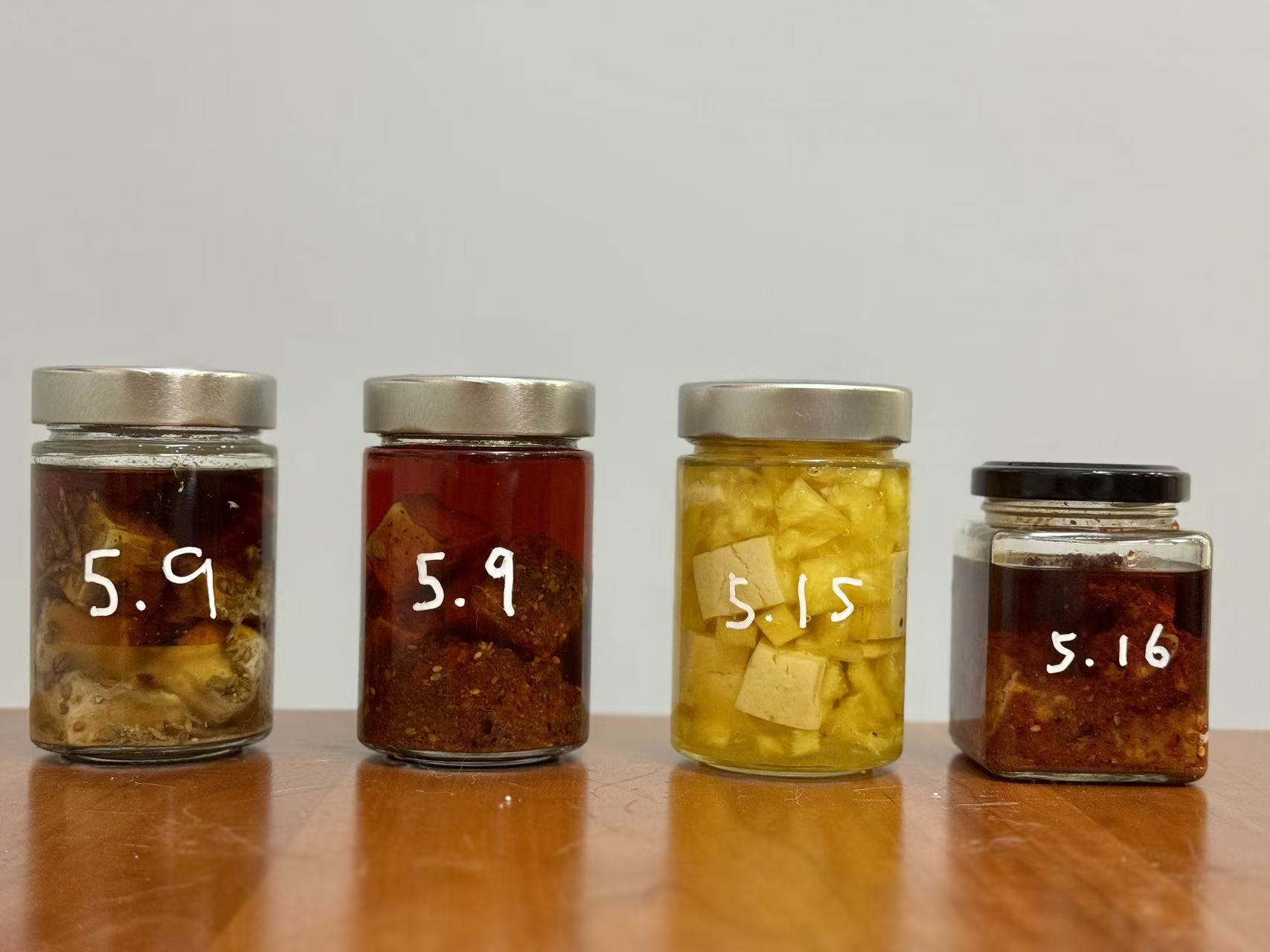 ↑辣味腐乳、白味腐乳,以及不太涉及发酵的猎奇的凤梨腐乳