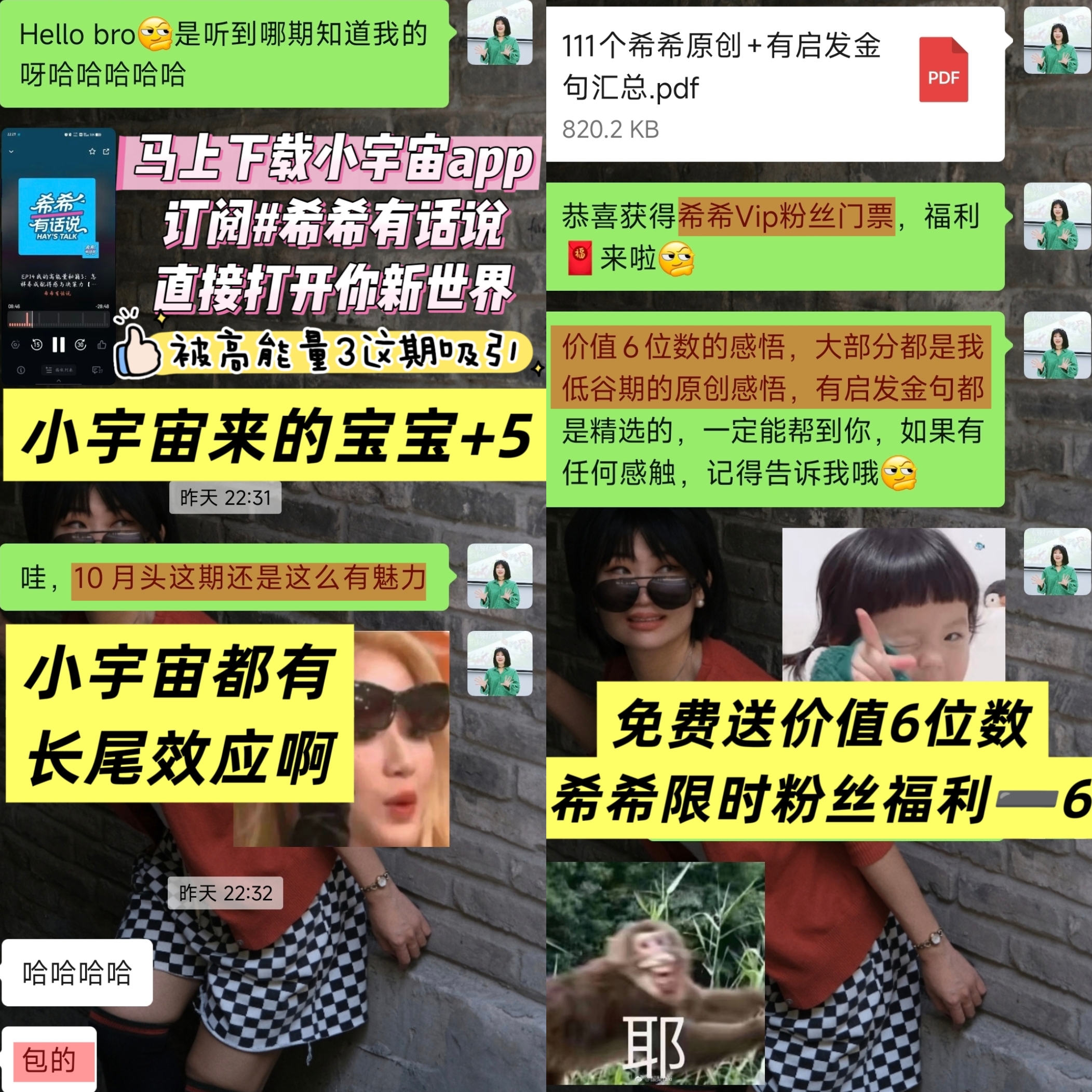 随手附送我用心整理的原创111个金句价值6位数的粉丝福利(做希希的粉丝就是幸福啊哈哈哈哈哈~)