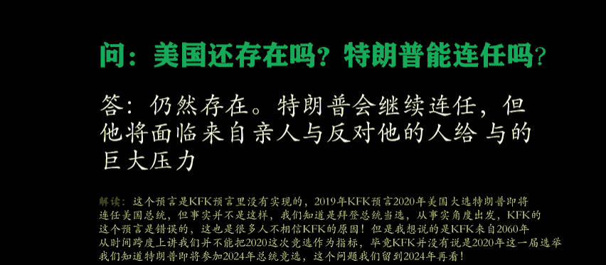 - 他预言特朗普将连任、东京奥运会会发生事故、2022-2023 台海会有一次事件等,其中东京奥运会因疫情延期、中国女排未夺冠等情况似乎与他的预言相符,但特朗普未能连任、2019 年下半年南方边境省份也未发生重大灾难,其预言存在诸多错误。