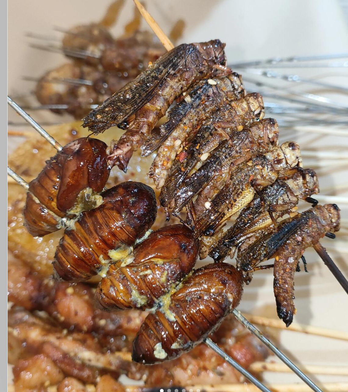 05:42 云南烧烤在烤些什么呢(特色食材:昆虫-蚂蚱、竹节虫、蜂蛹;内脏-脑花、牛脊髓;特色时蔬-草芽、黄花菜等等)