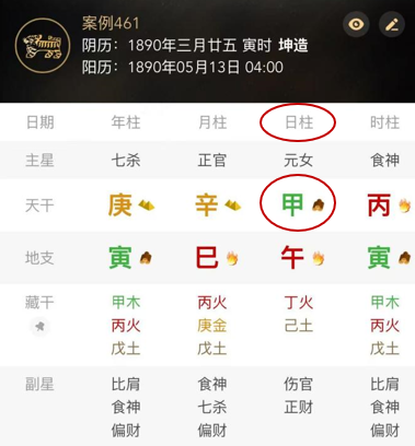 *看日柱下的天干汉字,即为相应日主