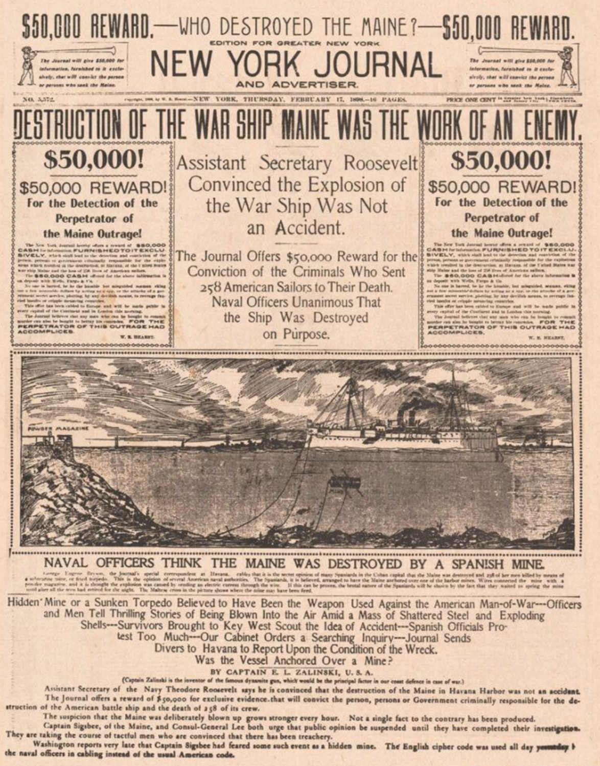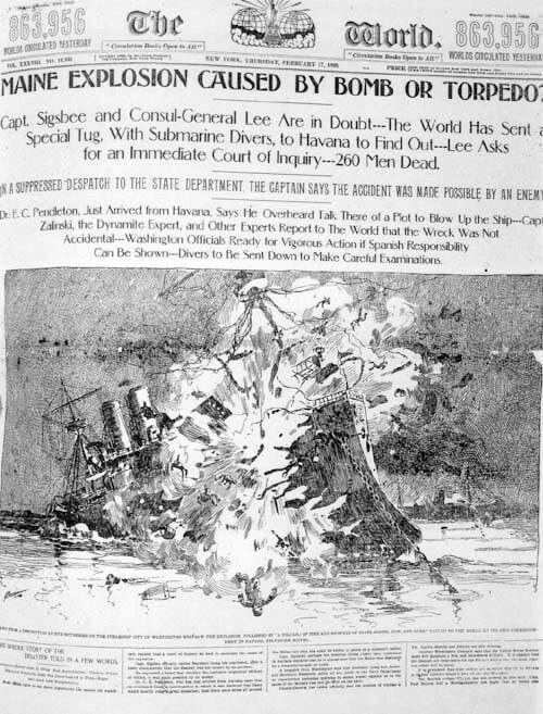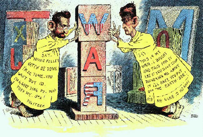 “黄色新闻”之战的高潮,是赫斯特的《新闻报》和普利策的《世界报》打口水战,最终把美国卷入了美西战争。