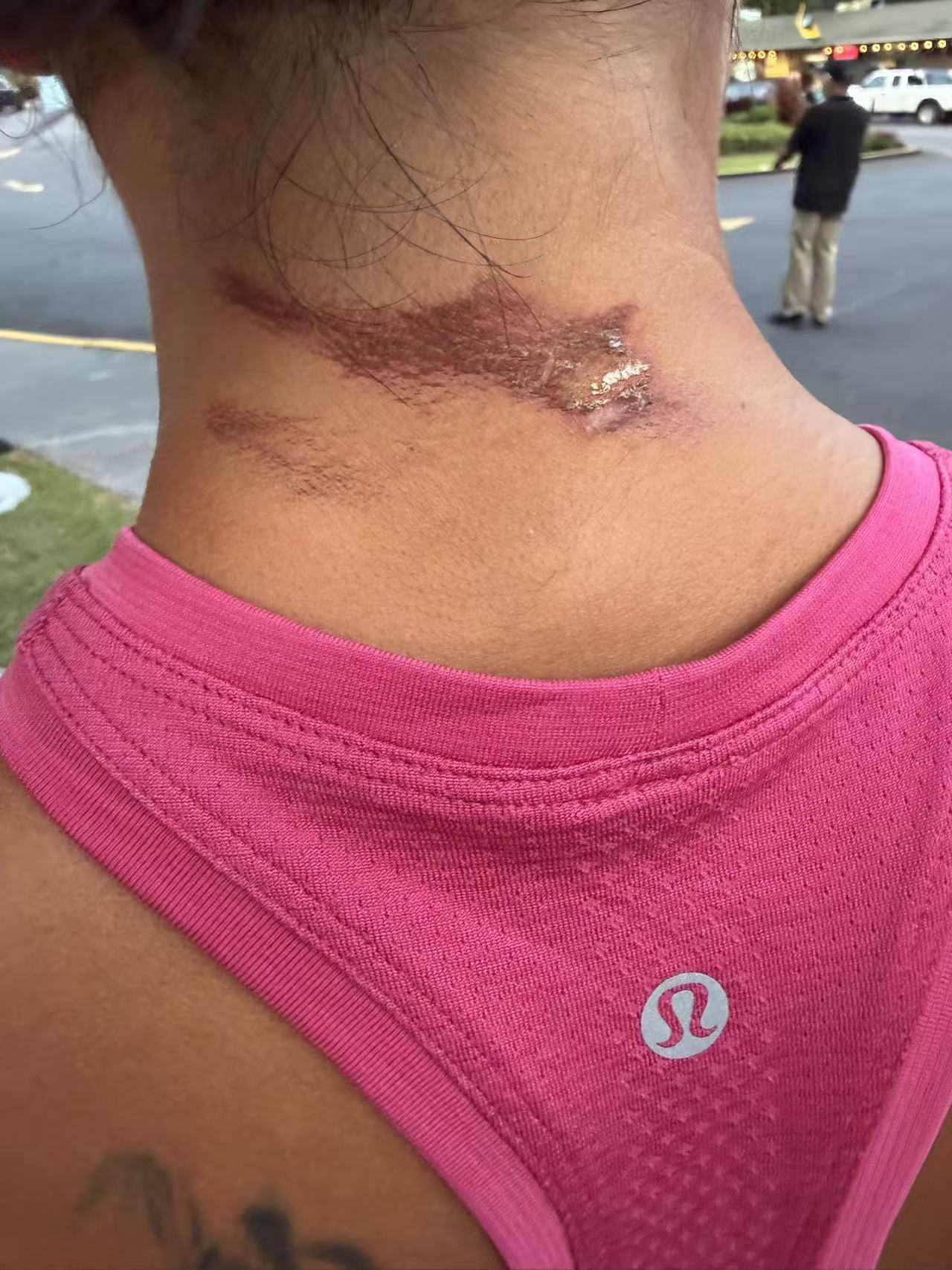 代雯被快速泳衣磨破的脖子↑