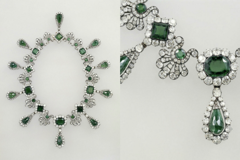 - 玛丽-路易丝王后(Marie-Louise d’Autriche,1791–1847):祖母绿项链、祖母绿耳环 套件