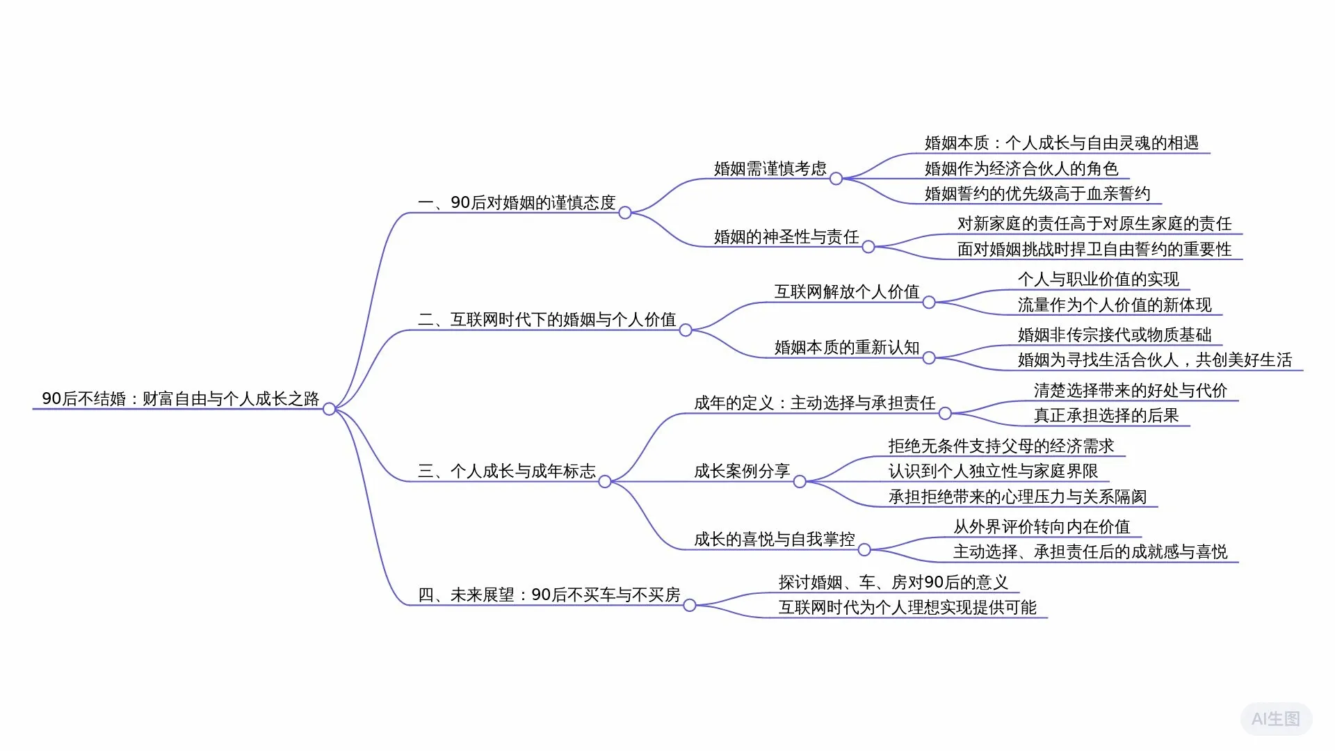 - 谨慎(Prudence):这并非绝对地反对婚姻,而是主张一种高度的审慎。因为婚姻需要让渡个人自由,涉及到复杂的经济合伙关系,还可能引入原生家庭的干涉,所以年轻人(尤其是30岁前)应优先专注于自我建设,谨慎对待婚姻决策。