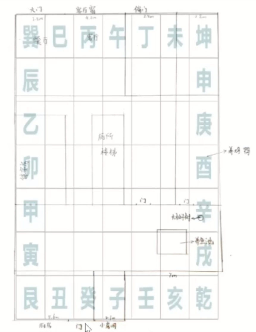 03:23-03:58 乾卦缺角+正北鱼池:男主身体差、不着家,柚子树压过“水吉”