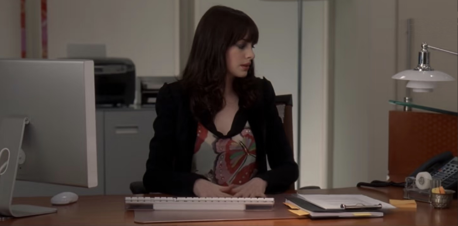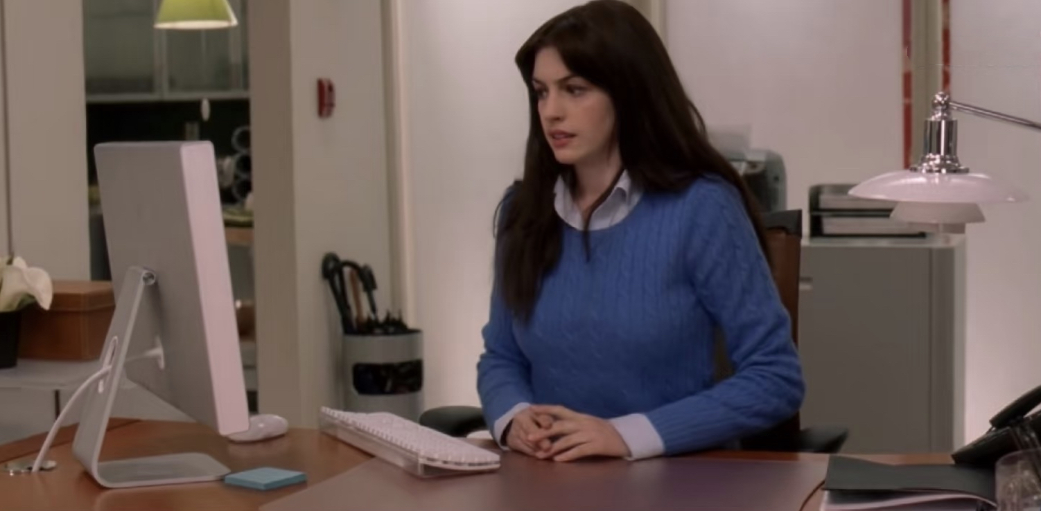 - 行为符号:她随手将外套和包包扔在助理安迪的桌上,甚至不屑于说一个“请”字。这个动作并非针对安迪个人,而是将她视为一个无生命的“衣架”或“家具”。