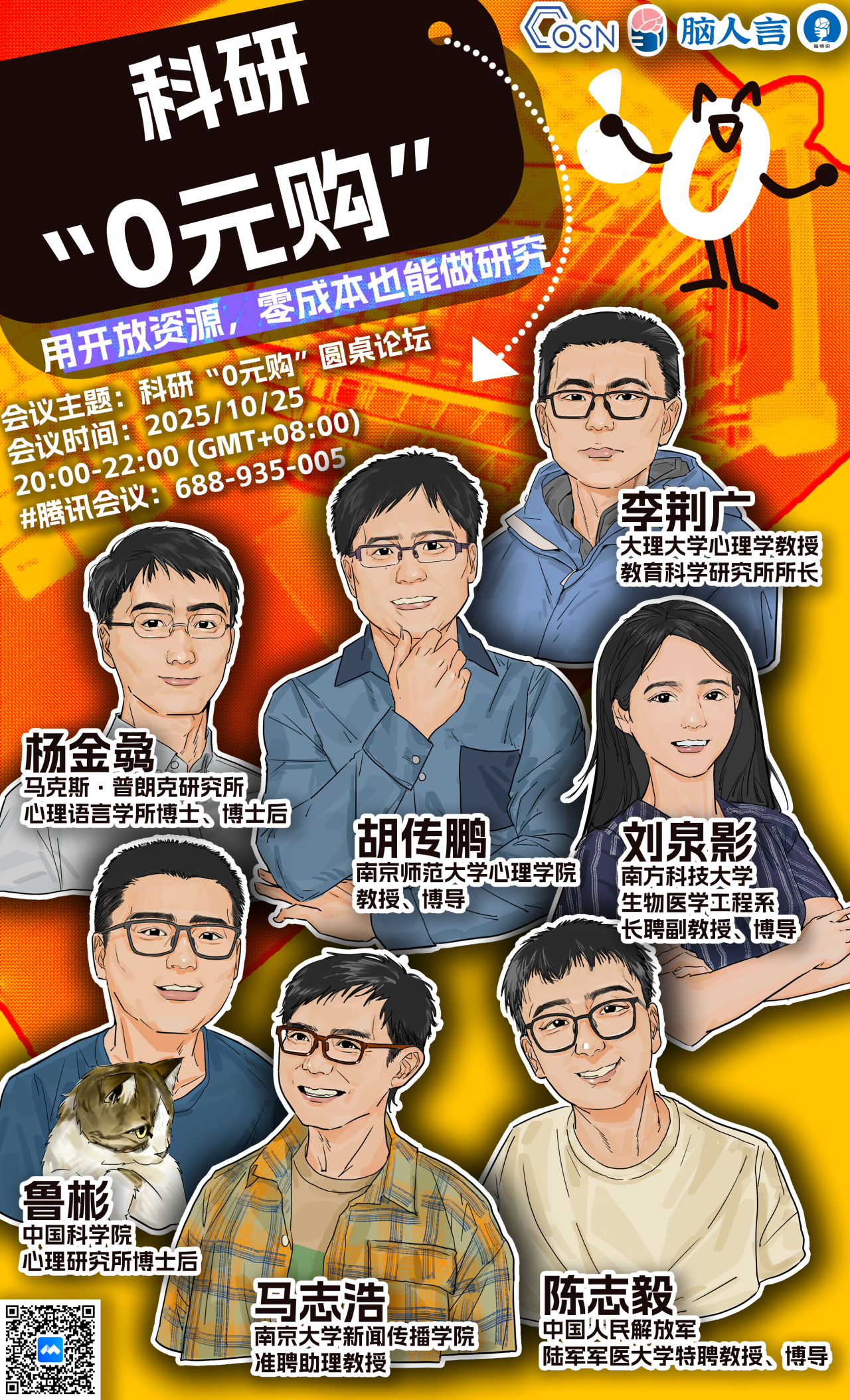 无论你是本科生、研究生,还是导师,欢迎来参加我们本期的“脑师说圆桌论坛”。这次圆桌论坛不仅是一次知识的分享,更是一次行动的邀请。带着问题来,带着数据和方案走。我们相信,当科学变得越开放,它就会越可靠,也越有力量。让我们一起把科研做得更开放、更可靠、更有力量!