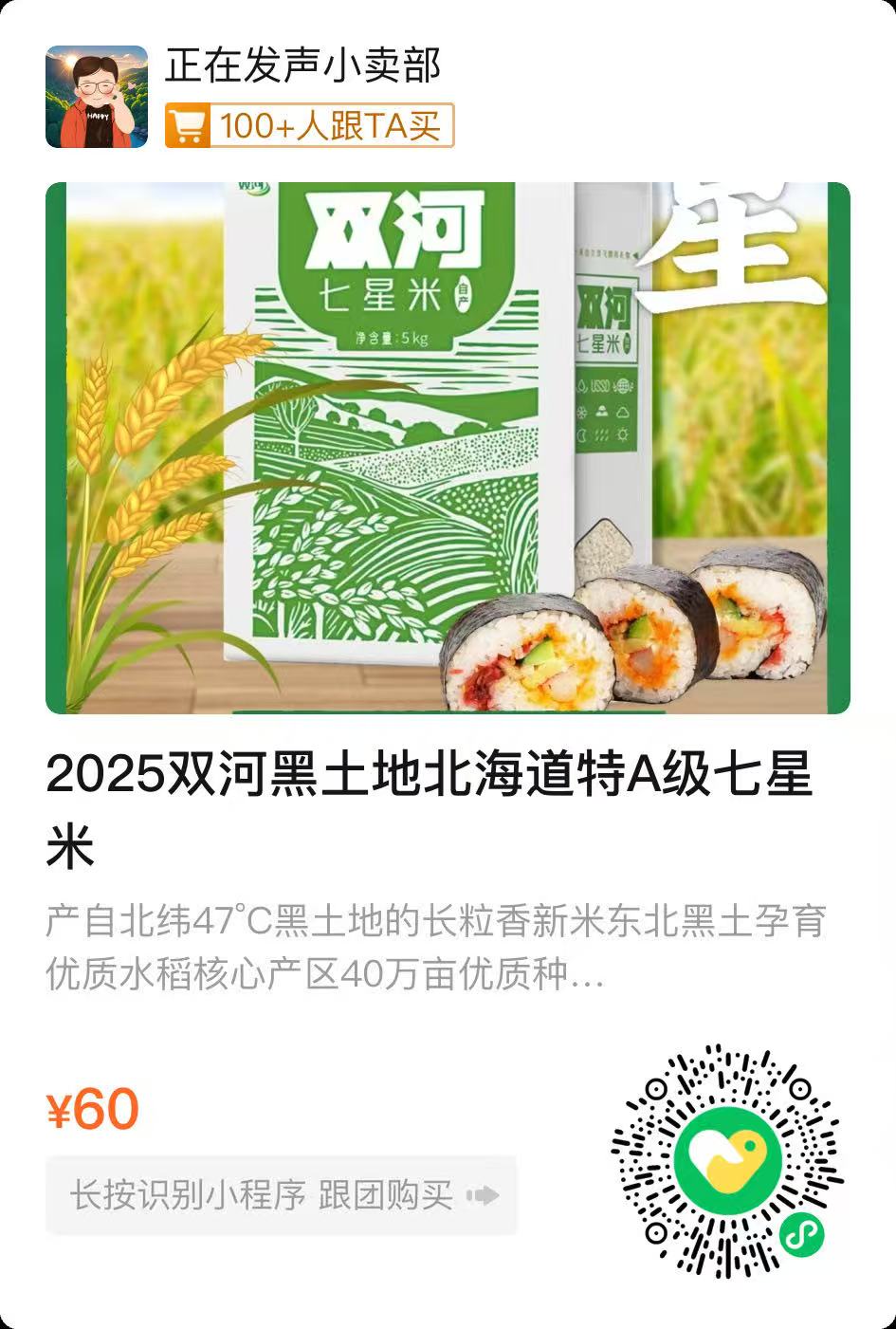 先来说一个特大喜讯,朋友们齐齐哈尔双河农场当季大米来啦!识别下图二维码,就能看到我们上架的多款产品,点击订阅购买,如果搜索不到,请直接加麒导:starwxymusic ,我们会不断更新各种良心好物,跟着雪莲吃美食!