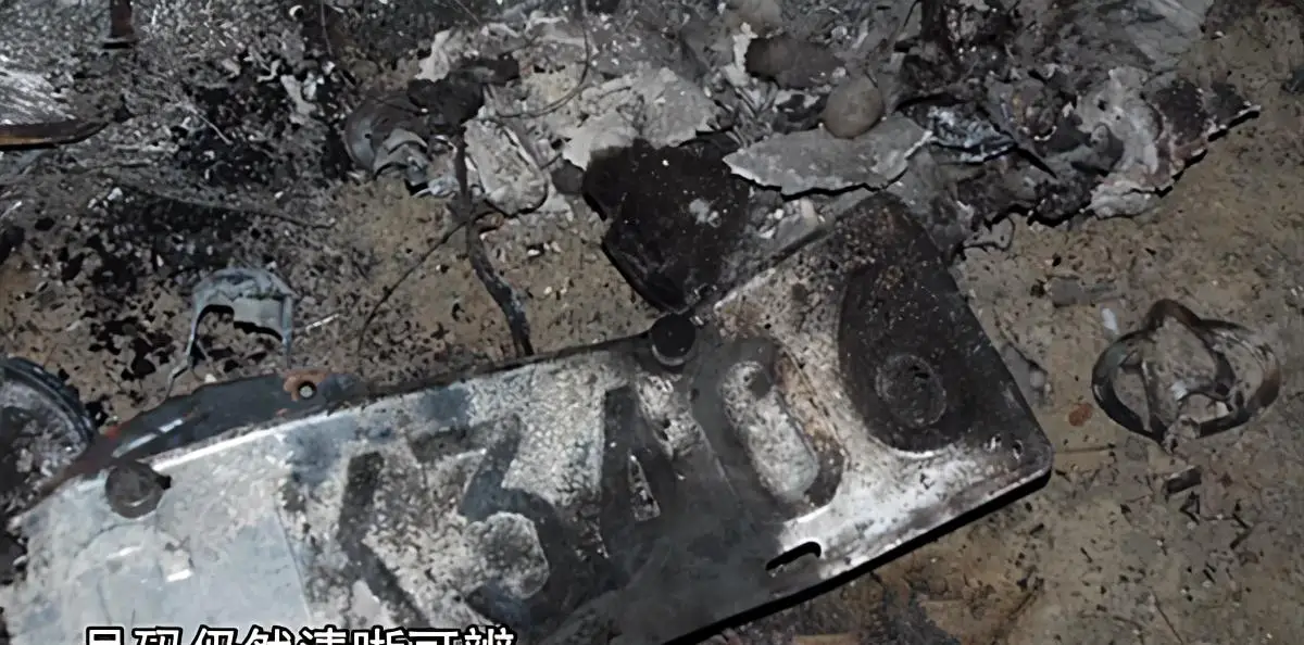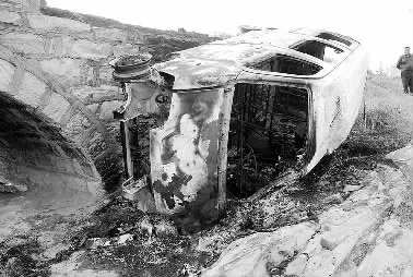 被烧毁的面包车和残片