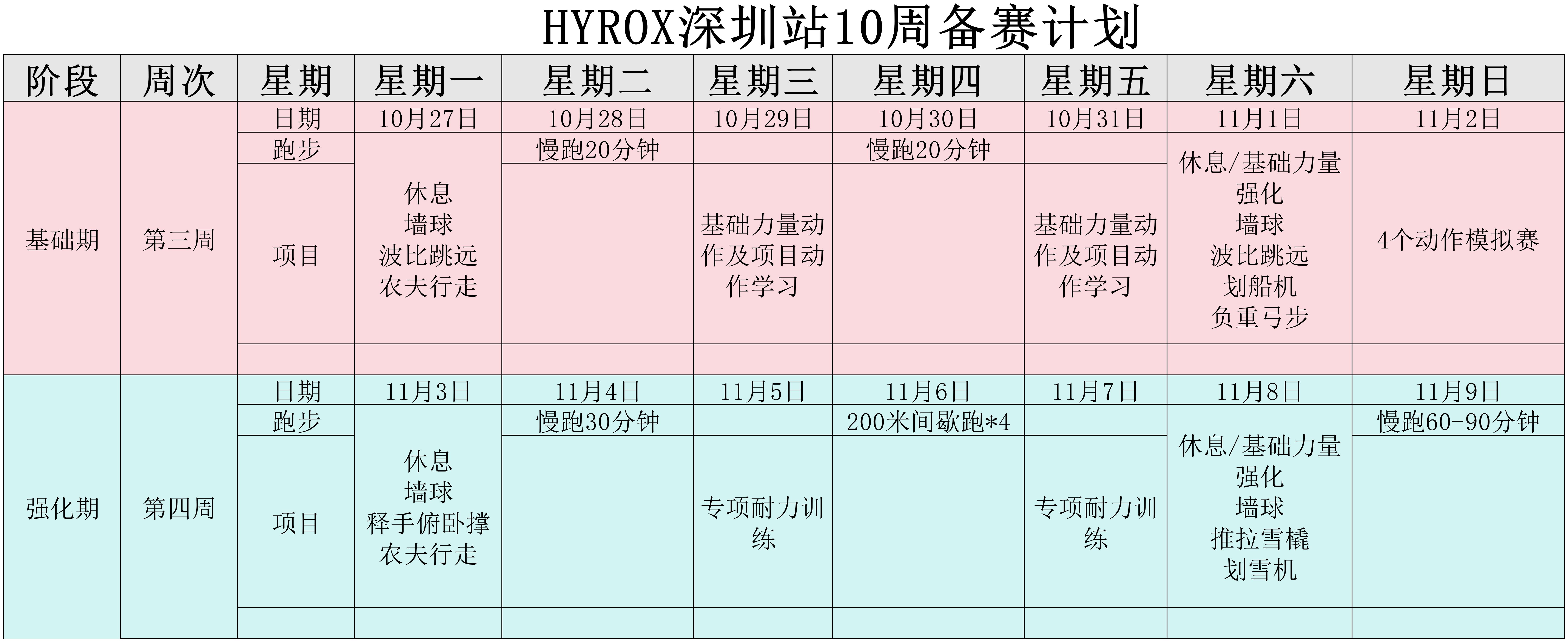 HYROX上周训练总结及本周计划说明,有兴趣的小伙伴可以添加何教练微信hebx2010.
