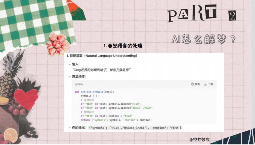 我们从神经生理学假说聊起,简单介绍弗洛伊德《梦的解析》的历史地位后,过渡到对荣格分析心理学的名词解释,结合三位主播的梦的实例,提供给大家能立马上手的AI解梦技巧。