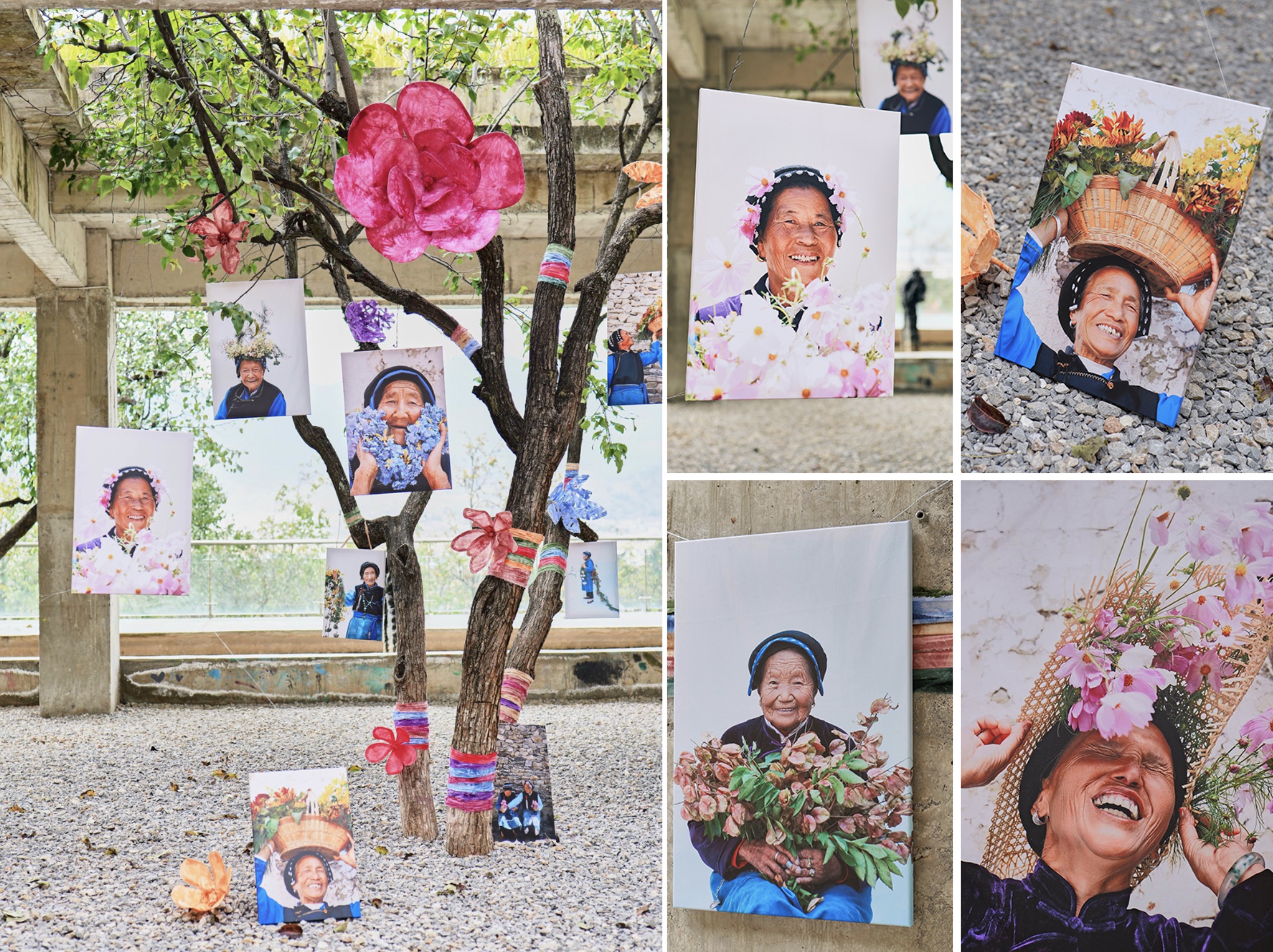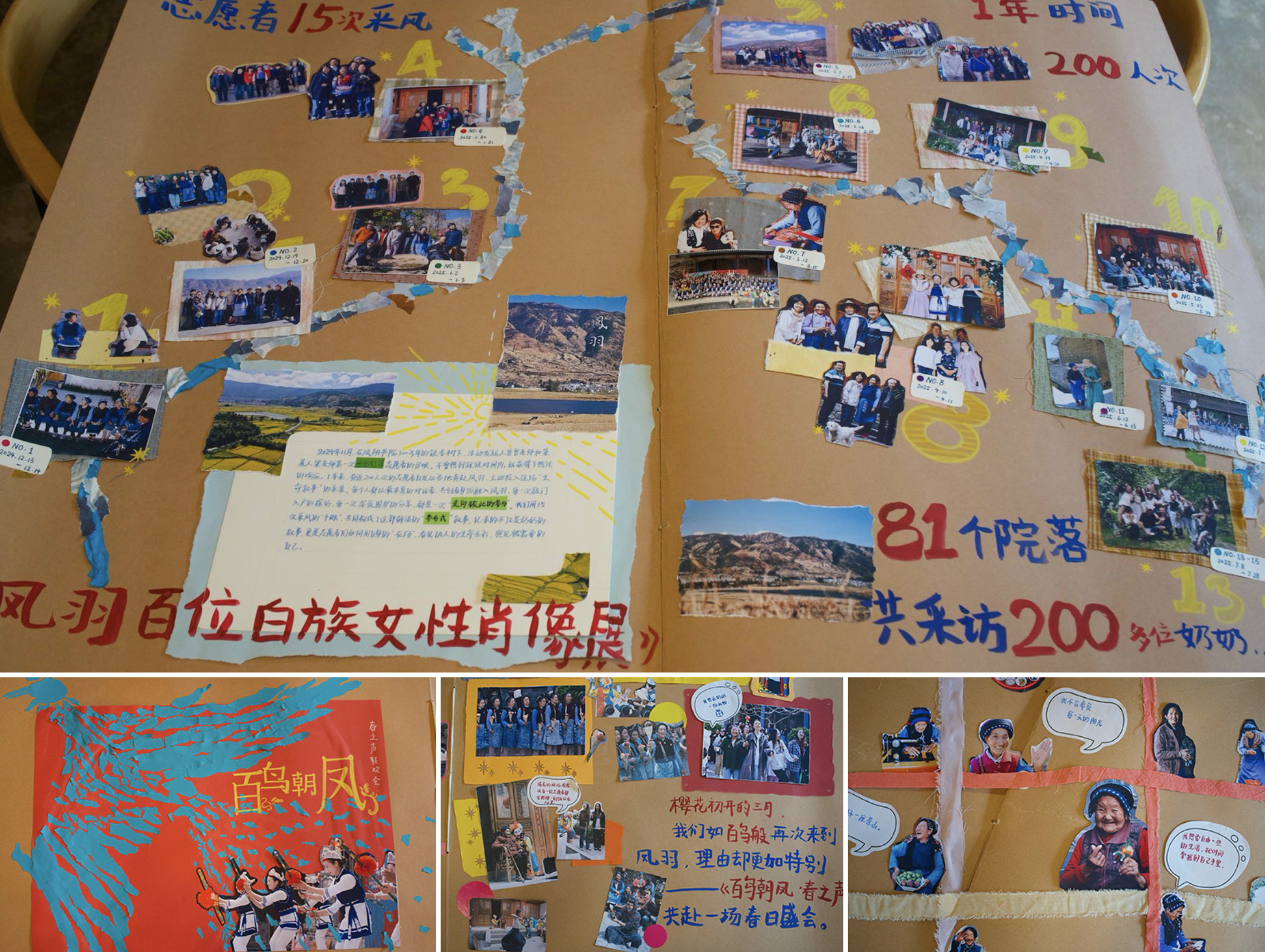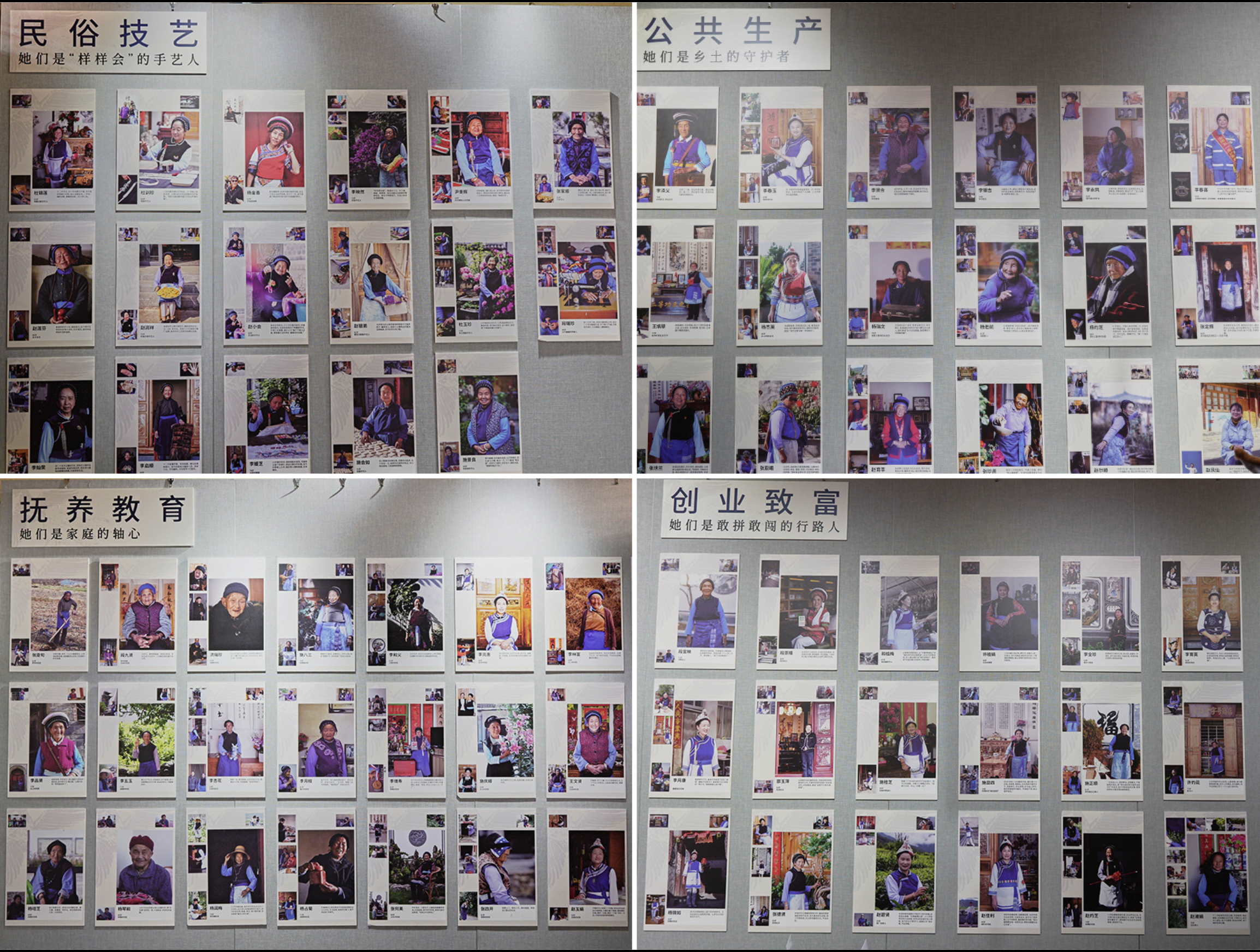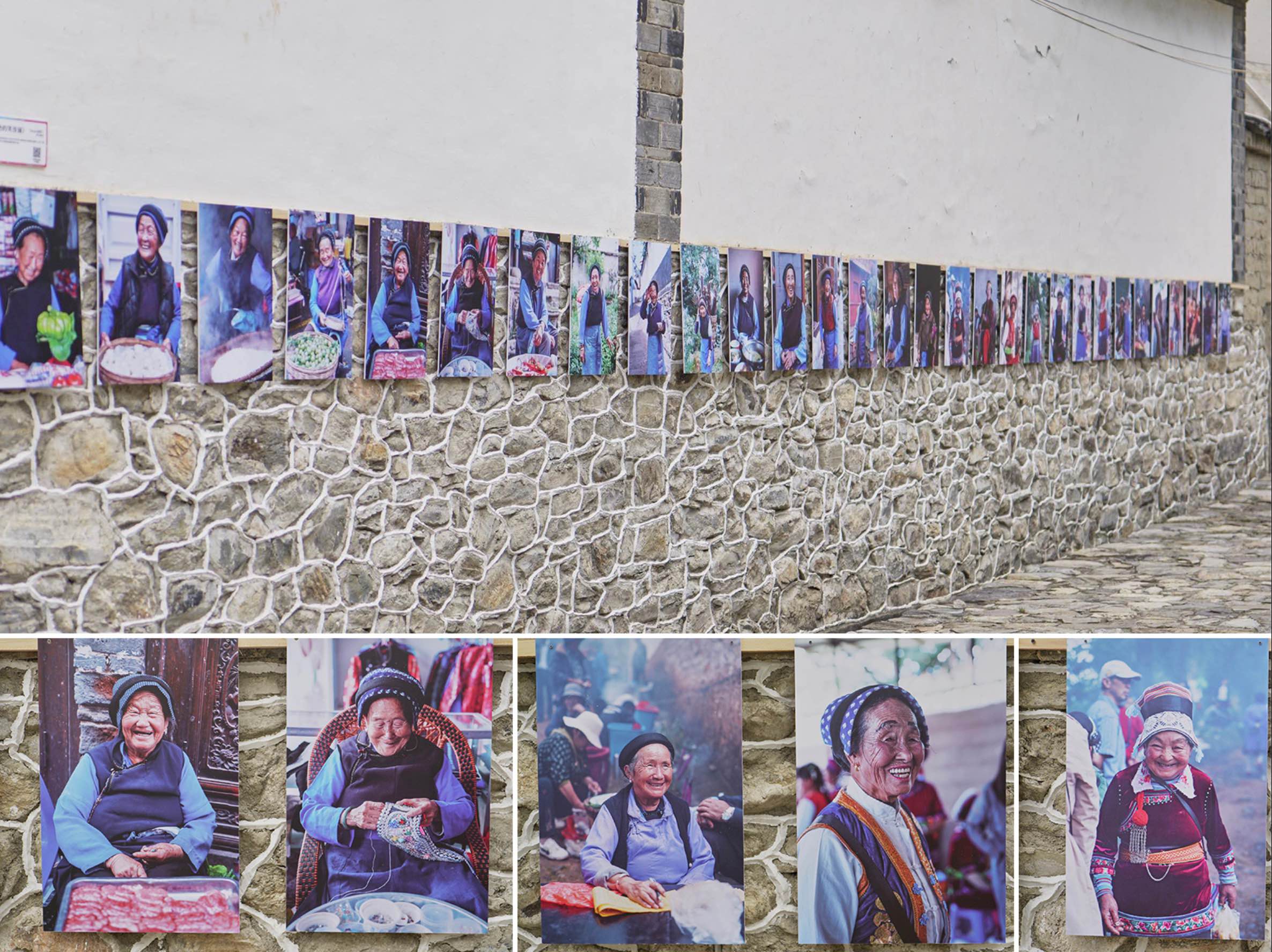 这次展览由“曾曾的书屋”发起、“美好的书”担任策展团队,以“参与式策展”为纽带,在一年时间里聚集起200人次志愿者、共创伙伴和在地力量,历经15次采风,走进81位奶奶的院落采集故事,为200多位白族女性肖像。
