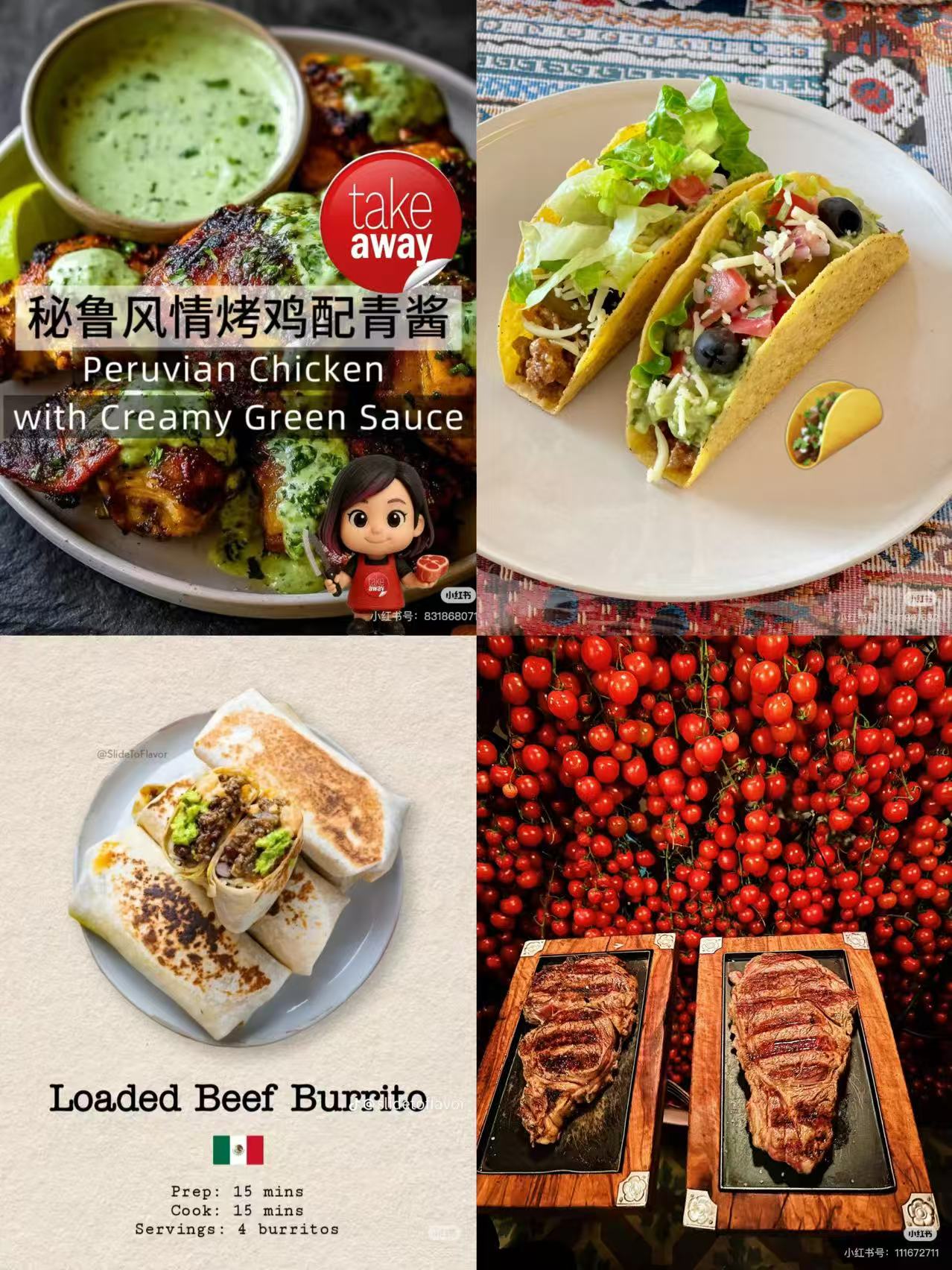 吃拉美美食: Taco玉米饼,Burrito卷饼, 布宜诺斯艾利斯牛排,秘鲁烤鸡