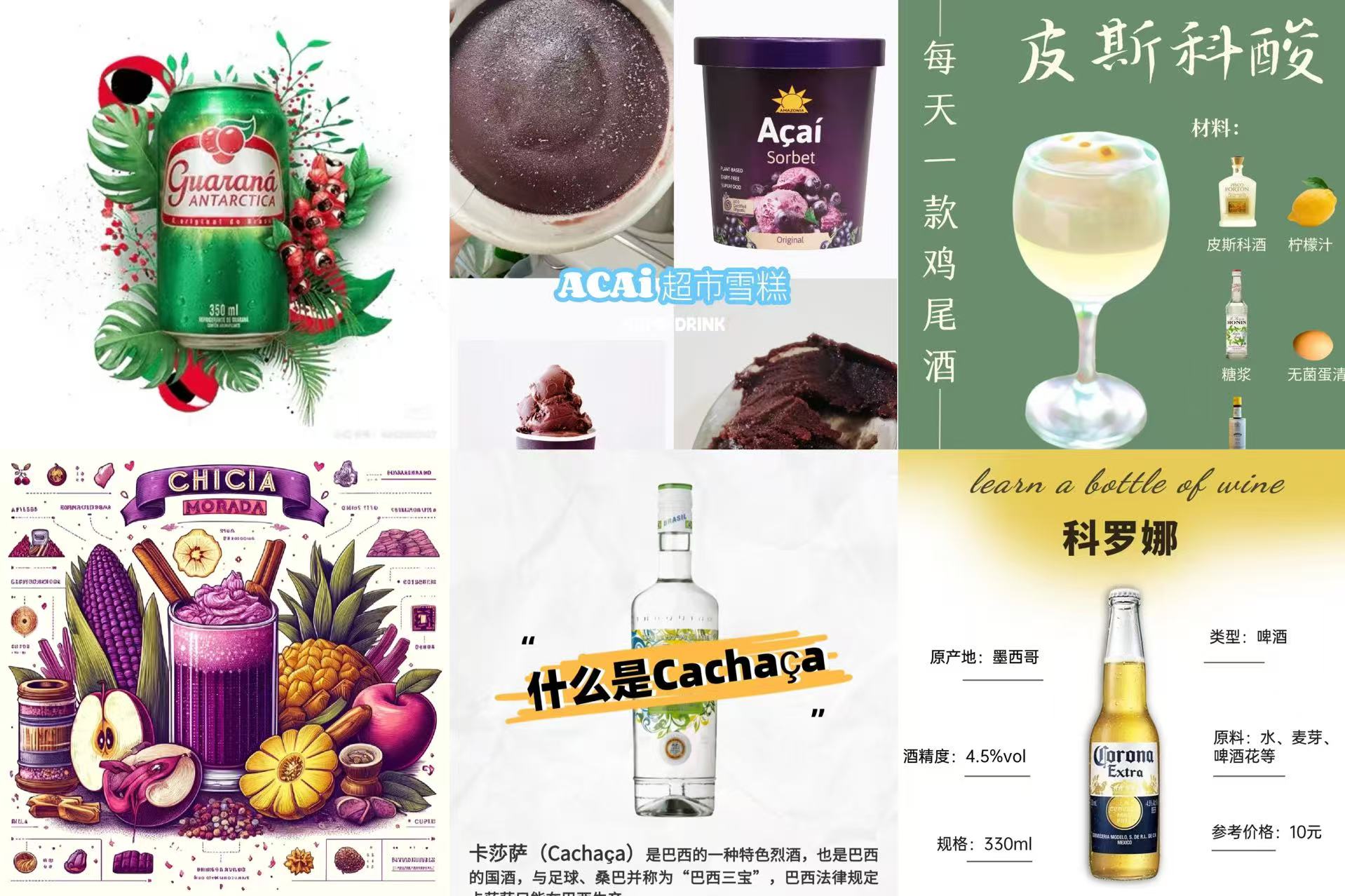 喝拉美特色酒饮:巴西Guavana, 秘鲁Chicha Morada,阿萨伊Acai, 皮斯科酸 Pisco Sour, 甘蔗酒Cachaca,墨西哥科罗娜Corona