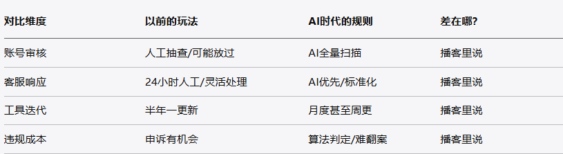 这些细节我在播客里手把手跟你讲,尤其是那个"AI审核系统自查清单",文字真的说不清楚。你听15分钟,马上就能对照着检查自己的店铺有没有踩雷。别犹豫了,这个月不调整,明年可能就被算法干掉了。赶紧点开听听吧,保证有收获。