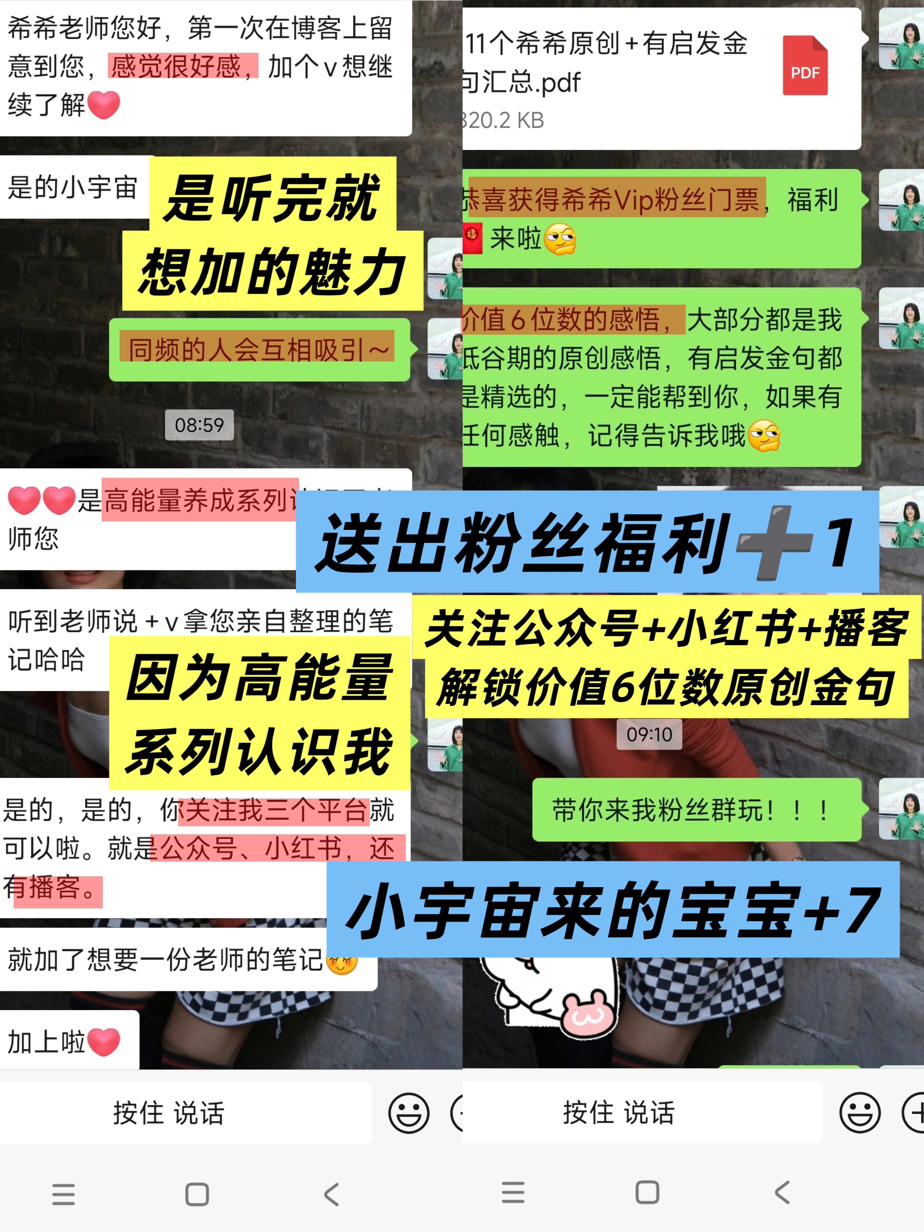 “边跑步边听到你的播客忍不住就加上”“感觉很好,怕自己忘记,真的很有缘分”认可我个人魅力的粉丝必须送大礼!