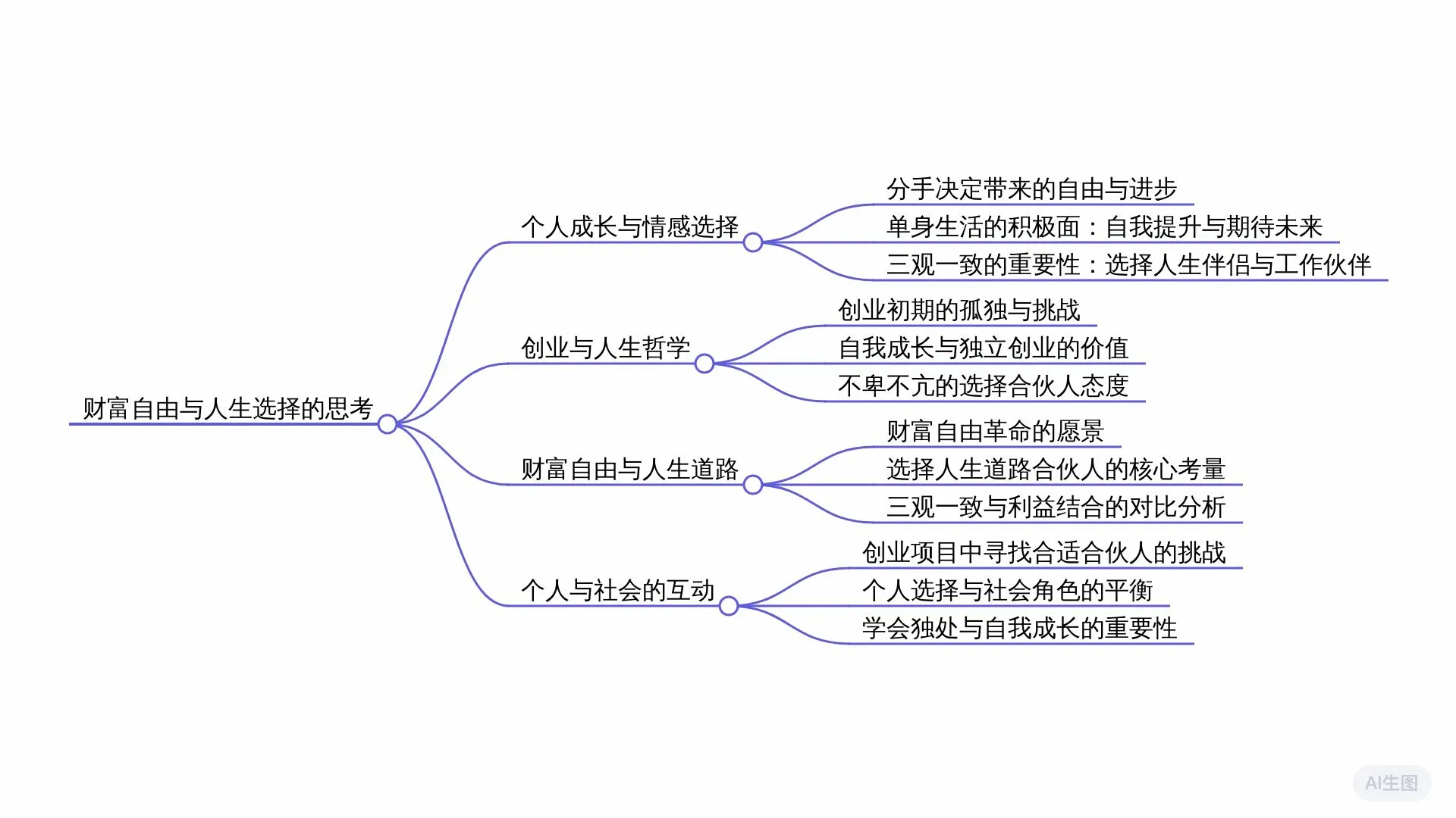 - 最终的心态:他认为,这种独立能让你在选择合伙人时“做到不卑不亢”:“有你我会变得更加的美好。但是没你我也能独自绽放,这一点太重要了。”