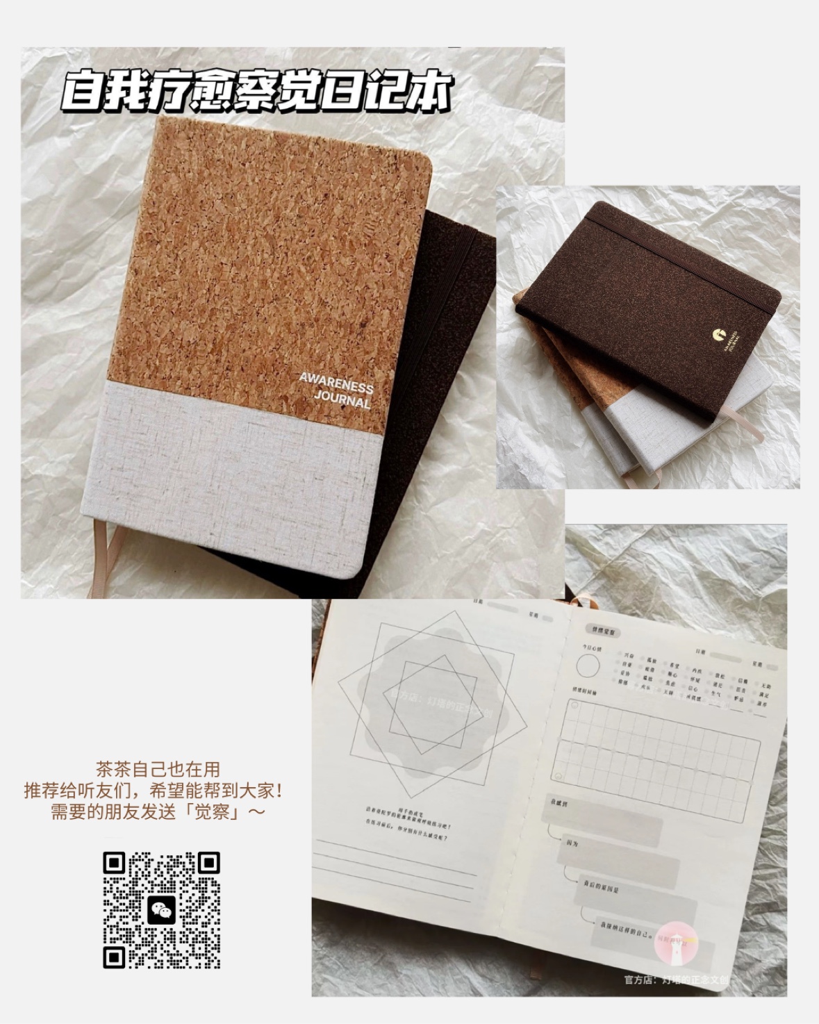 💬 播客里有提到一个觉察日记本,有需要下单的友友可以扫描图片二维码,发送「觉察」