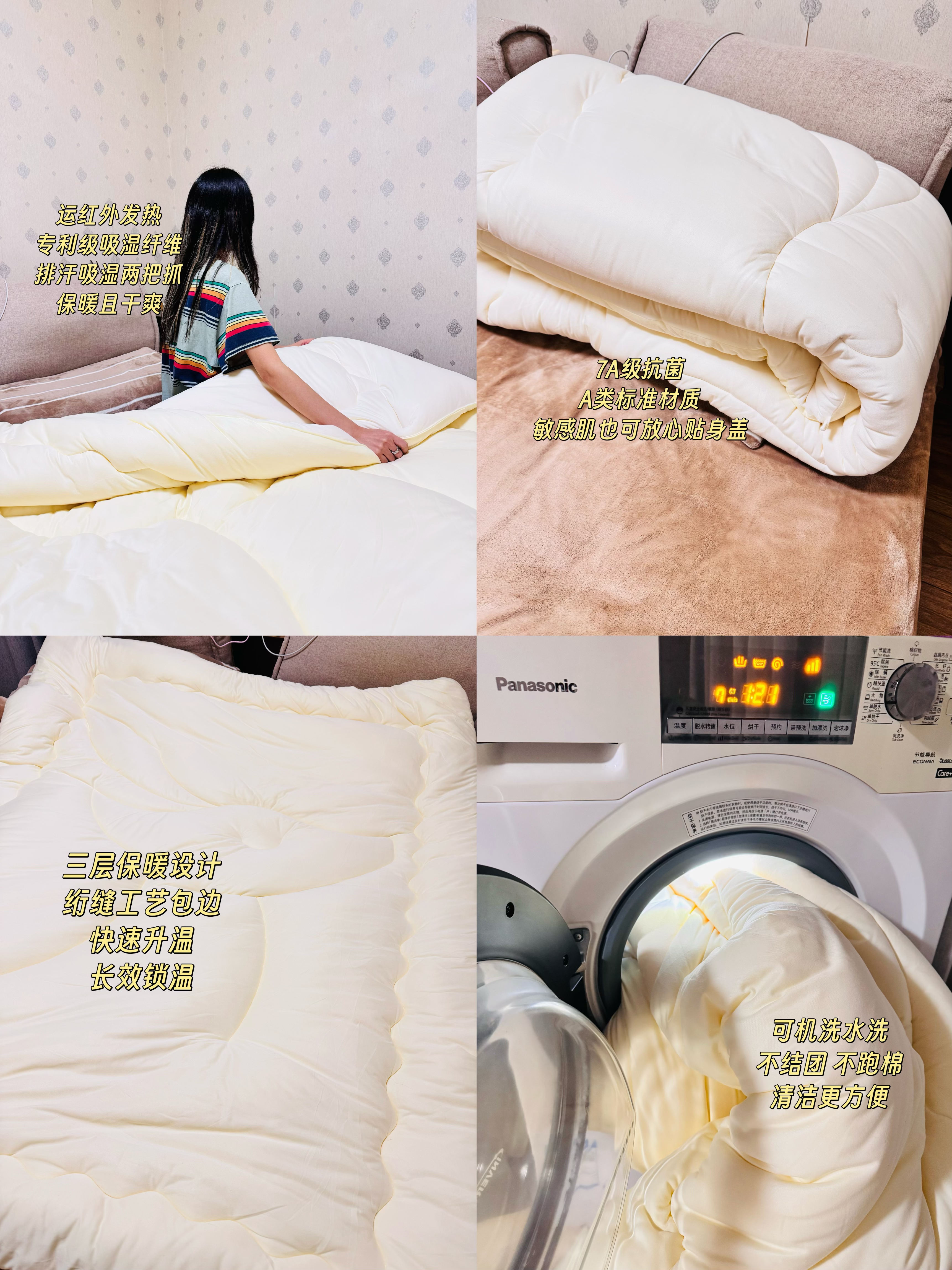 如果你怕冷、暖气还没来,夜里容易冻醒,或者是怕热爱出汗,总觉得被子盖着闷得透不过气,一出汗就周身不舒服的,那么这款被子非常适合你。简单讲讲优点: