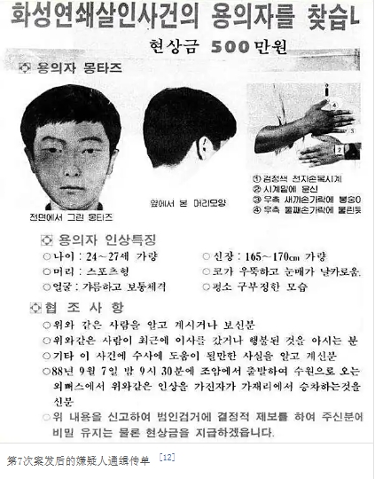 - 1988 年 9 月:54 岁安某下班遇害,下体塞桃子碎片,巴士司机目击凶手(24-27 岁、瘦长脸、手软),是最接近凶手的一次;9 月 16 日:13 岁朴某在家遇害,警方错判 22 岁尹某为 “模仿犯”(刑讯逼供 + 体毛误判),尹某入狱 21 年,2019 年才平反。