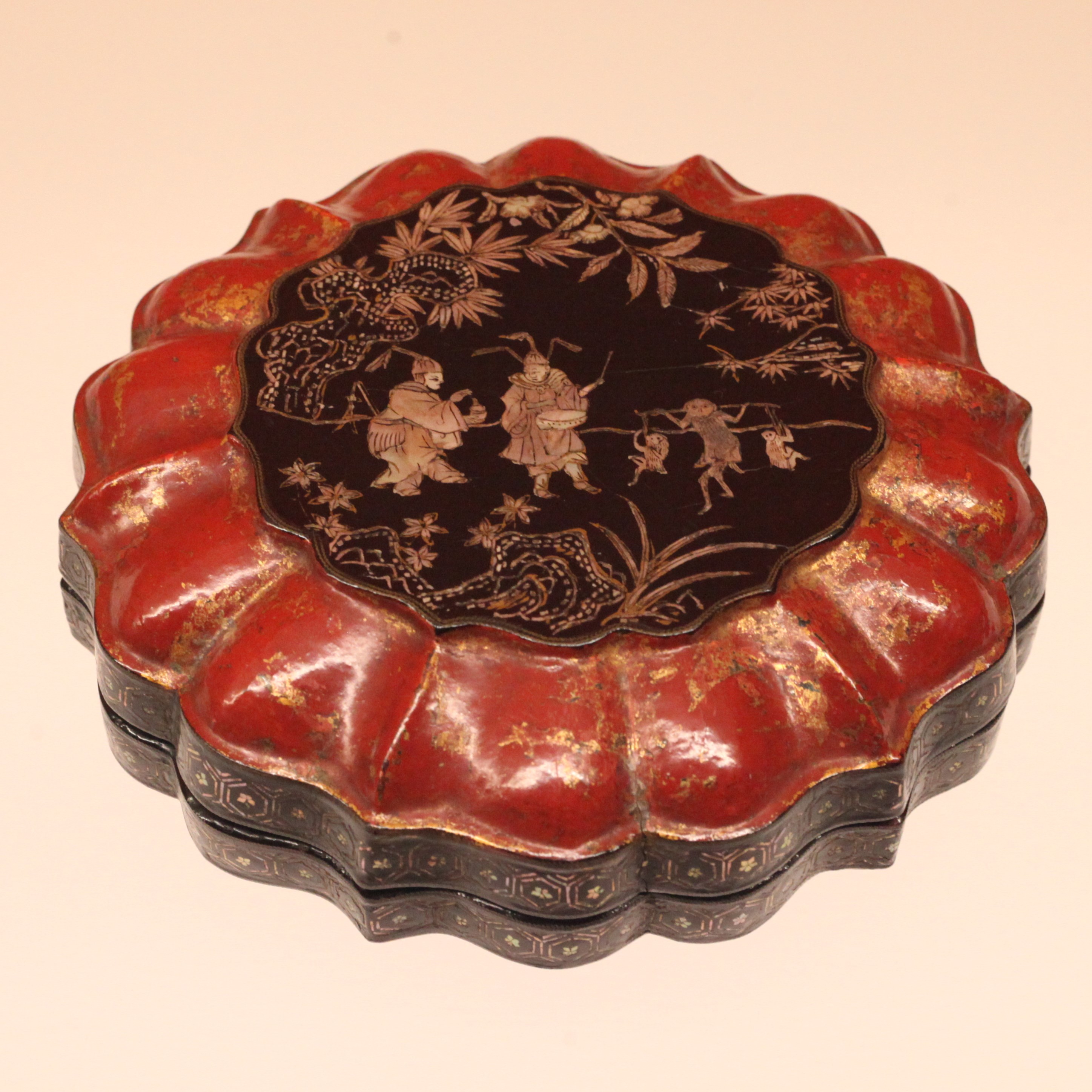 黑漆螺钿人物图菱花形盒,元14世纪,大阪市立美术馆藏