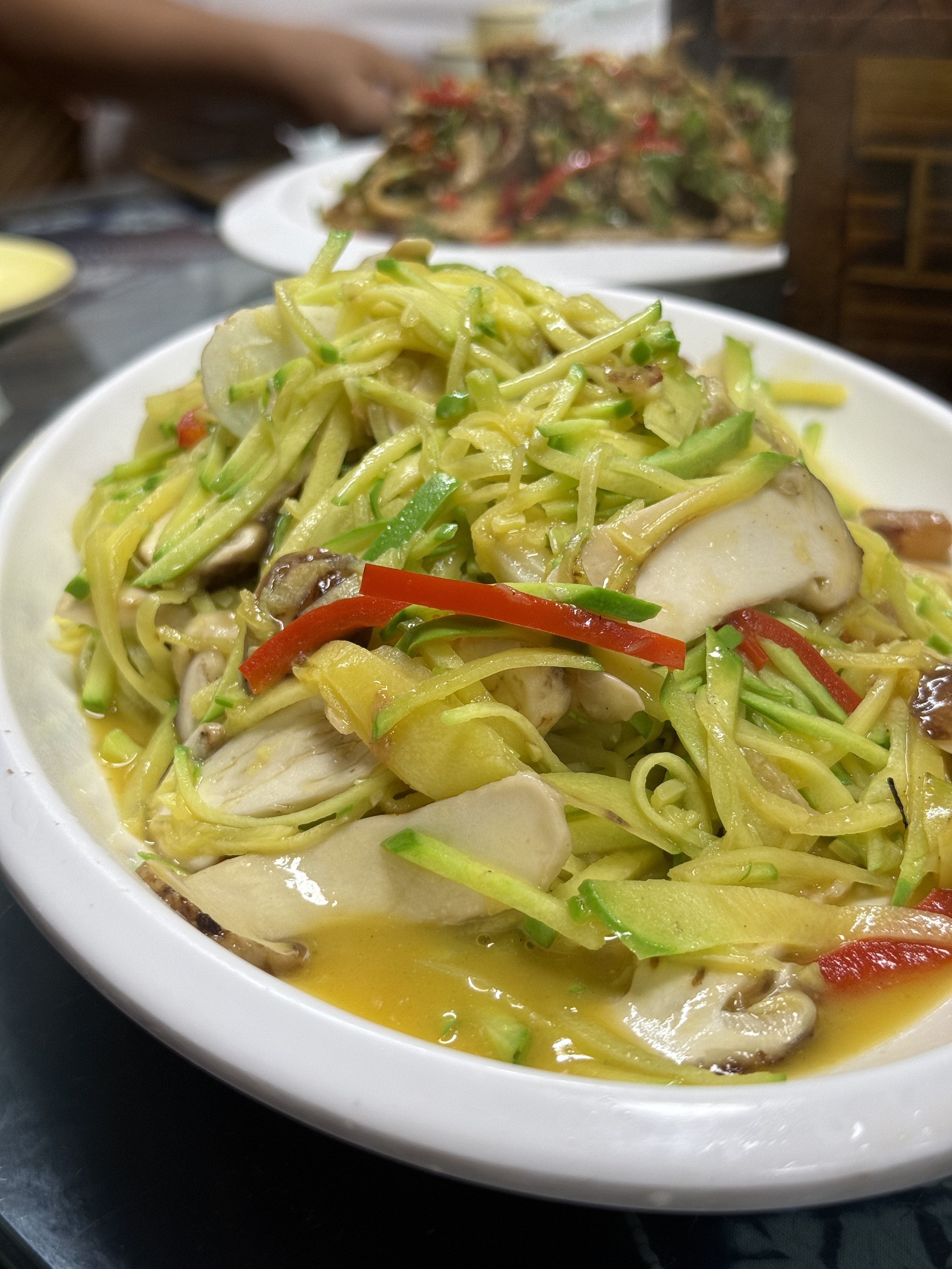 诺邓火腿、炒见手青、甜白酒乳饼、姜柄瓜炒松茸......一路上大家清空了许多碗盘,赶了好几个大集市,在鬼市上套大鹅的时候,感受到了云南是真的很「滇」: