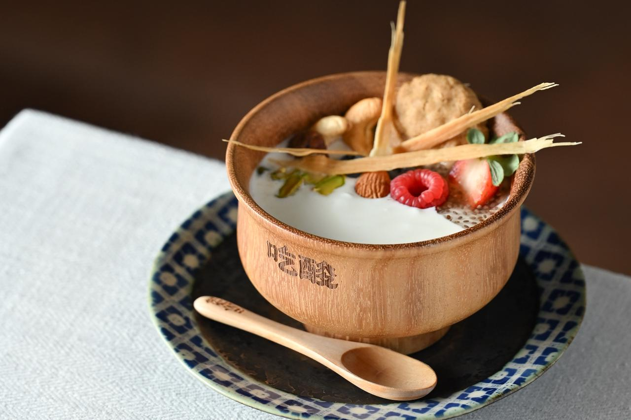 - 品酸:充分搅拌,黄桃的大颗果肉裹着酸奶激发西北黄杏明亮的酸甜口感