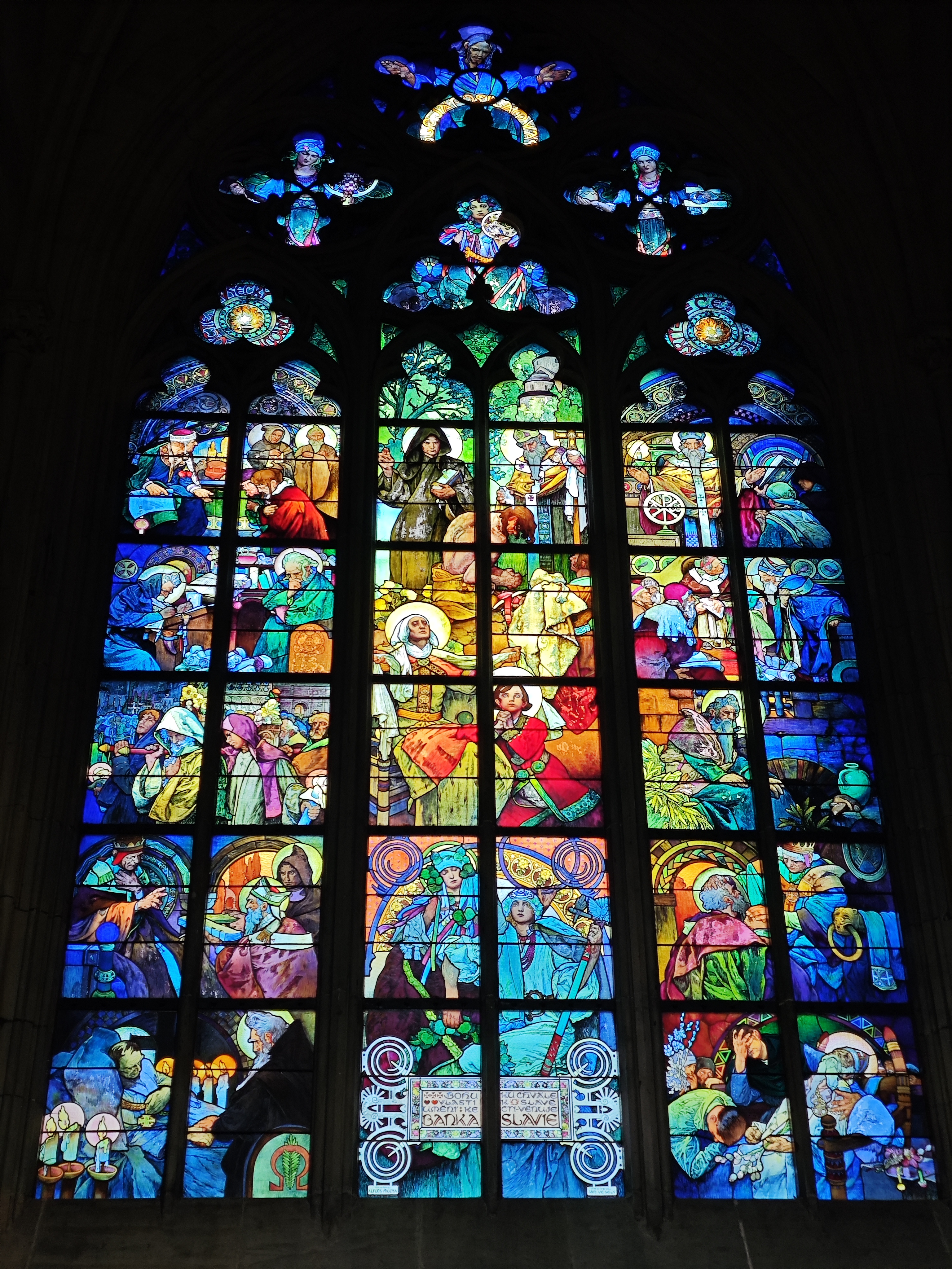 圣维特教堂里穆夏制作的玻璃花窗