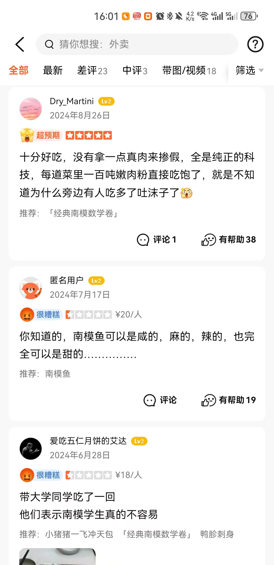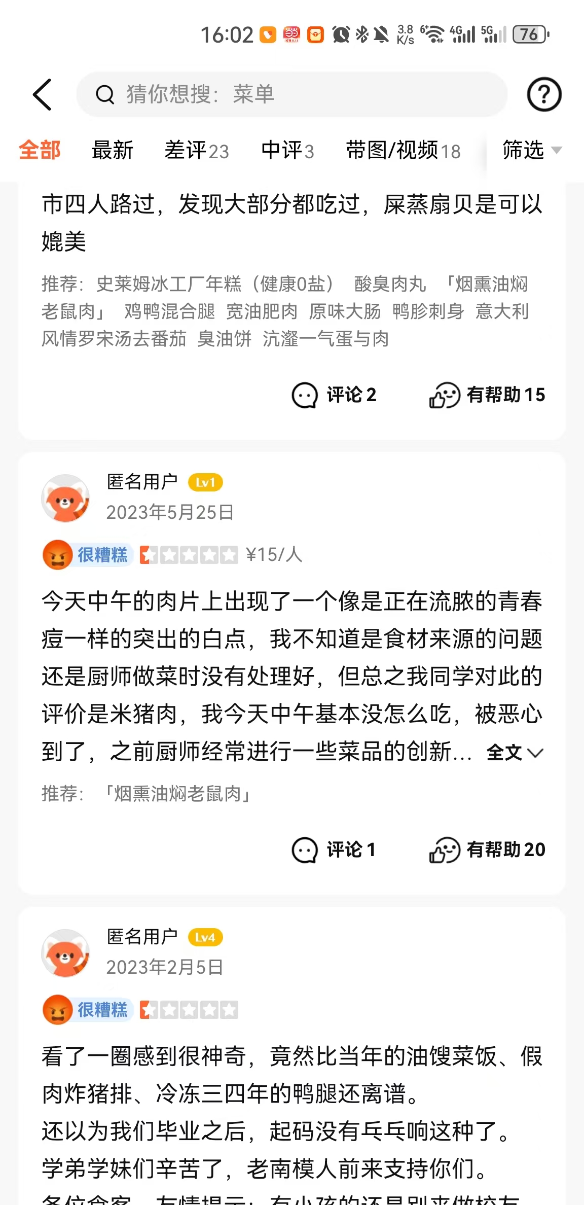 烟熏油焖老鼠肉,变异鸡,酸臭肉丸,小猪猪一飞冲天,潘莹鼻涕煮烂包,蛔虫面,蚯蚓下地,史莱姆兵工厂年糕,西红柿炒番茄,传统隔夜饭炒盐,咖喱石头饭,水煮薯条,鸡鸭混合腿,黯然销魂面,龟兔赛跑答辩炒粑粑,橡胶管意面,少女心炙烤马儿肉,玛丽亚请你喝茶,南模香香鸡,基佬紫馒头,钢丝面,蒸蛋缺德挞,老上海奶黄包佐海天酱油,宽油肥肉,原味大肠,丁老头er德芙巧克力,彩虹炒饭,鸭胗刺身,大肠刺身,无敌包菜盐巴面,情人节比翼双飞年糕,藕tu物,奥力给酱塑料大排,三国称霸面,名中学盖饭,世界旦炒饭,涅槃狮子头,502粽子,姜丝炒土豆丝,表皮脱落严重烧伤,沆瀣一气蛋与肉,黑木耳白菜炒皮革,意大利风情罗宋汤,蒸虾头,臭气扑鼻南模豆腐,福岛特产核废水养淋巴鱼,人生炒面,史色猪宝被豆沙灌满,臭油饼,Q弹重油面包糠佐鱿鱼圈,血红外星人肉,巧克力拌面,焦香臭麻婆豆腐,烂茄子泡油池子,经典巨咸含肉蛋饼,百戴银耳汤,干巴鸡腿,焖面猪肠,波奇饭,辣蒸僵尸鱼,经典发霉花菜,面粉炖蛋……
