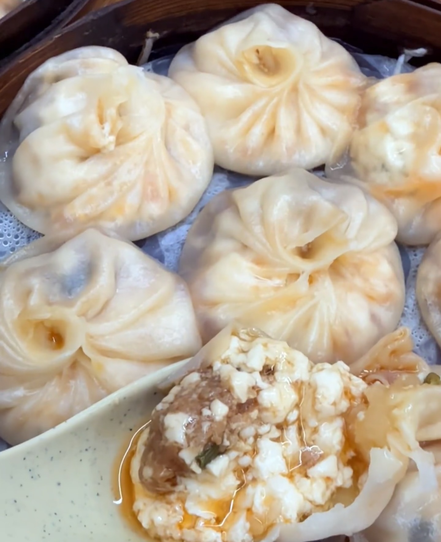 (已经找不到节目中提到的小时候记忆里,超薄超扁超透的豆腐小笼图片了,但这个看起来也是相当好吃。)