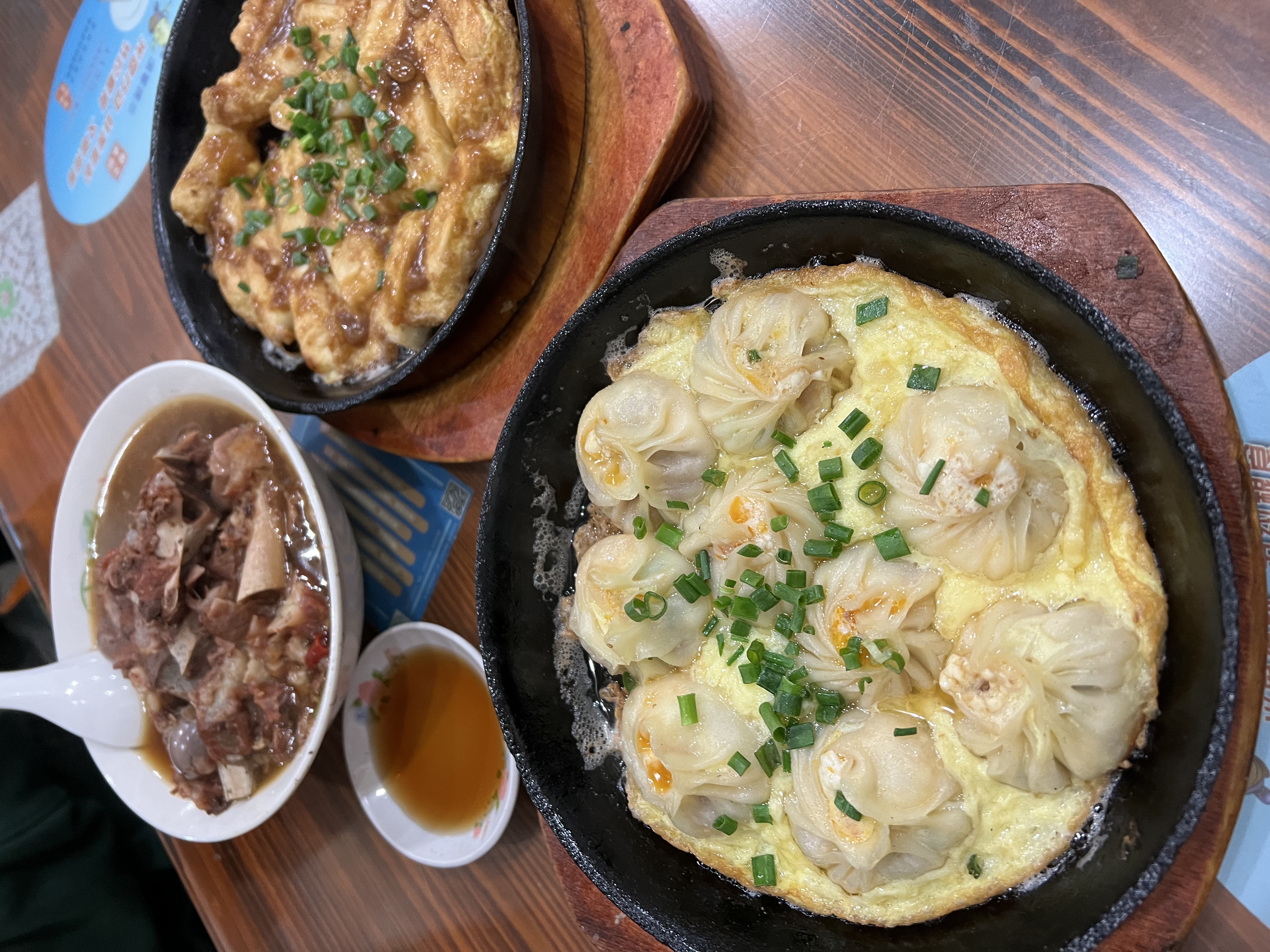 (这张图是鱼籽自己拍的,除了豆腐生煎,还有铁板年糕、羊骨头汤,都很好吃。)