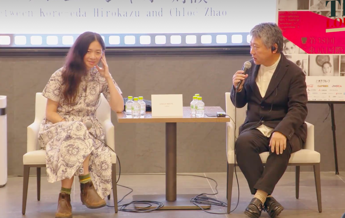 这种相互的欣赏为两位导演之间的亲密对谈定下了基调,他们发现彼此之间的共鸣远超预期。对谈举行时,赵婷的最新长片正准备作为闭幕片结束本届东京国际电影节,而是枝裕和则正在拍摄他的新片《盒中羊》,主演包括绫濑遥和搞笑艺人千鸟大悟。
